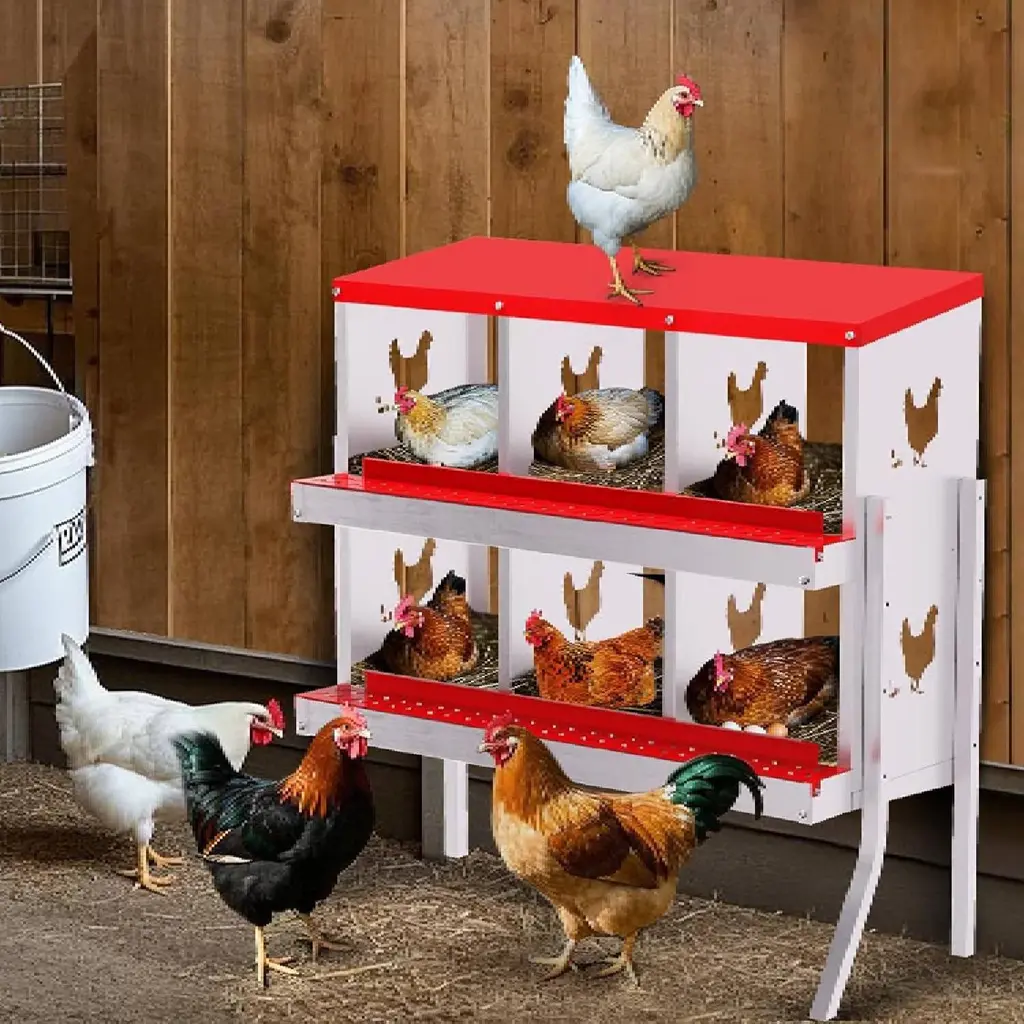 Chicken Nesting Boxes With Roll Out Egg Collection And Legs - Red 6 Compartments