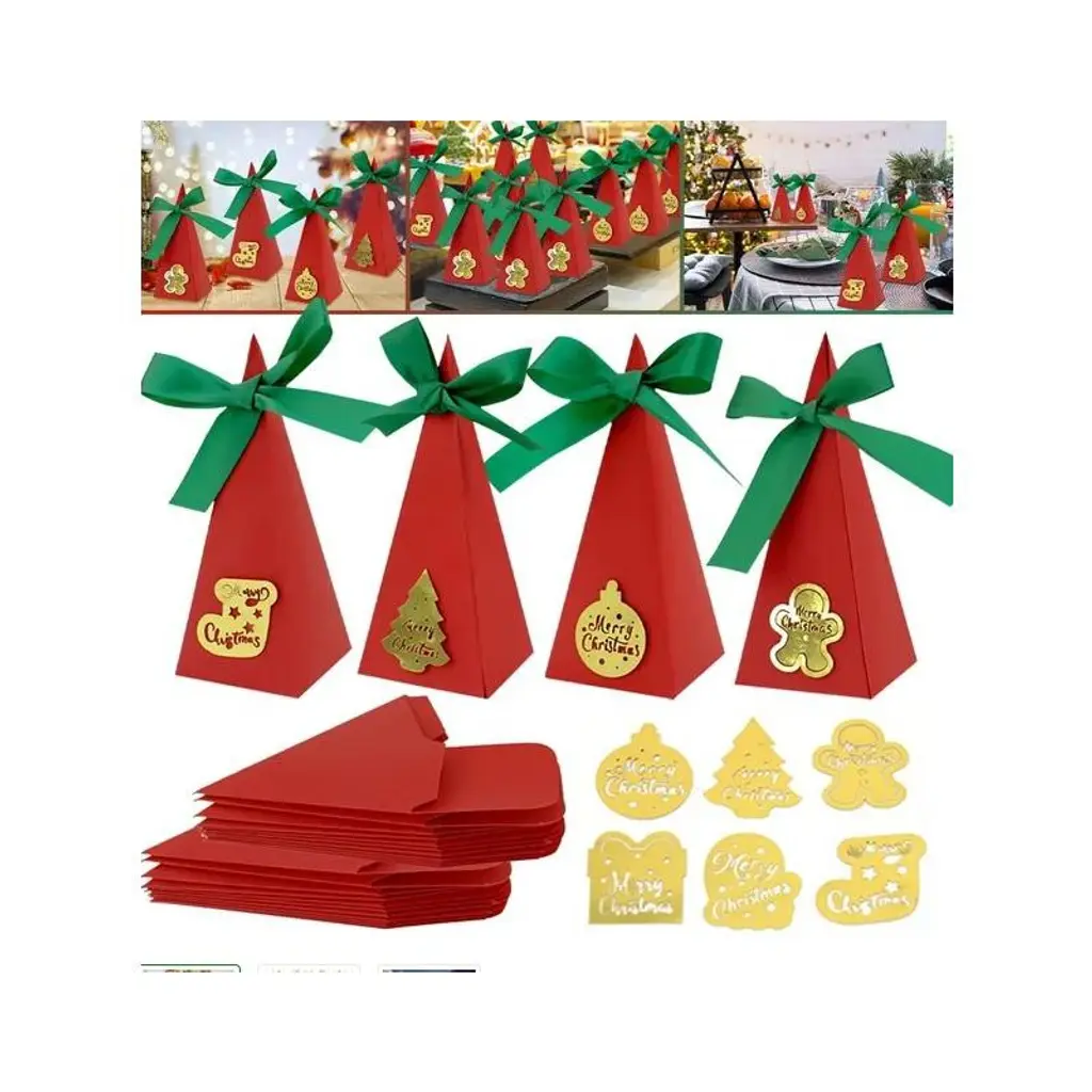 Christmas Candy /Gift Boxes (4 Styles),cute Diy Paper Boxes With Ribbons Triangular Birthday Dessert Boxes Christmas Party Supplies,20pcs
