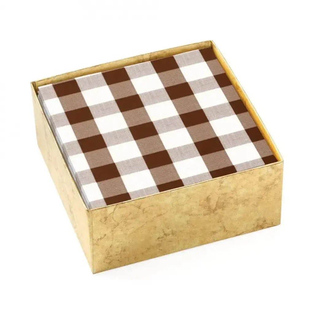 Caspari triple-ply napkins are both striking in design and durable in function. Thoughtfully designed to elevate any occasion, they feature artwork and designs from museums and artists around the world. Each is made of triple-ply tissue and printed in Germany with nontoxic, water-soluble dyes and food-safe ink. They are FSC-certified and made using environmentally-conscious raw materials, which ensures they are both biodegradable and compostable. Our napkins bring eco-friendly style and convenience to your tabletop. 40 napkins included in a gilded gift box with acetate lid. Caspari boxed cocktail napkins make an excellent and useful gift item.