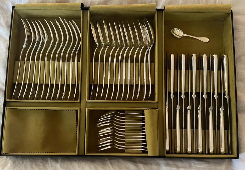 Christofle "Malmaison" Silver Plated Flatware In New Box, Set Of 49