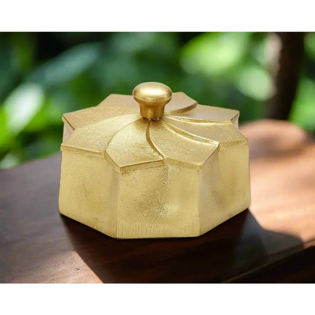 Elegantly designed, this gold jar will upgrade any table setting with a flair of elegance. Load it with family favorite goodies and place it on the table for a sweet addition to a hearty meal. Present it to your friends and loved ones as a specialty gift for their celebration or party.