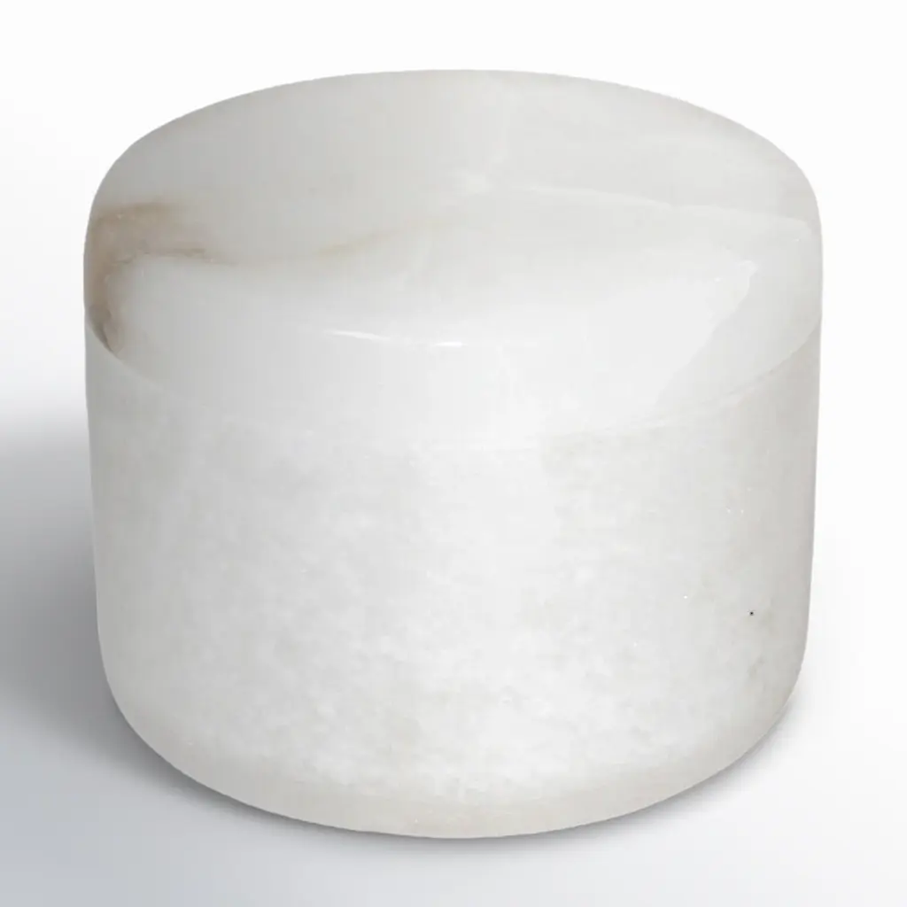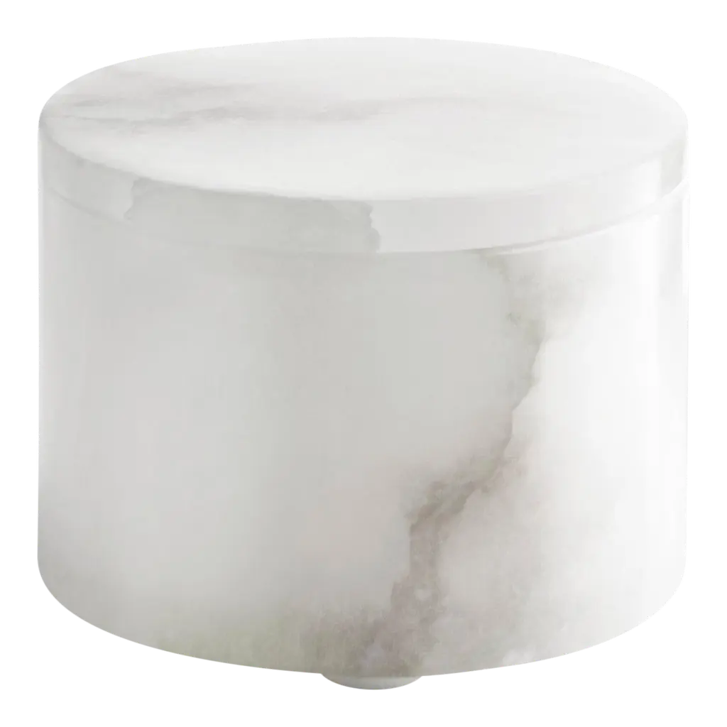 Elevate your space with this round marble decorative box. Crafted with a fully removable lid, it's perfect for storing small treasures or adding a touch of sophistication to any room. Machine made with precision, it's a modern must-have.