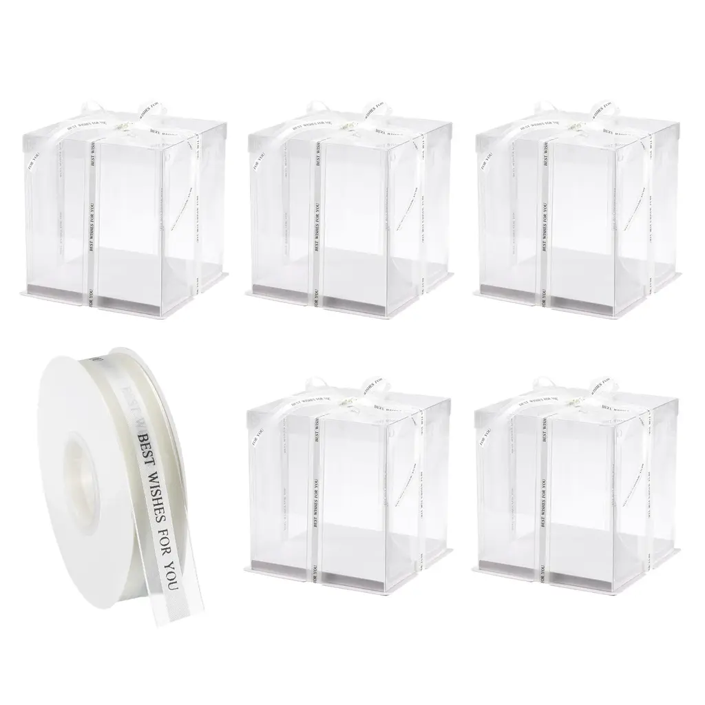 Clear Cake Box With Ribbon, 5Pcs 9"x9"x9" For 6 Inch Cake Packing - White