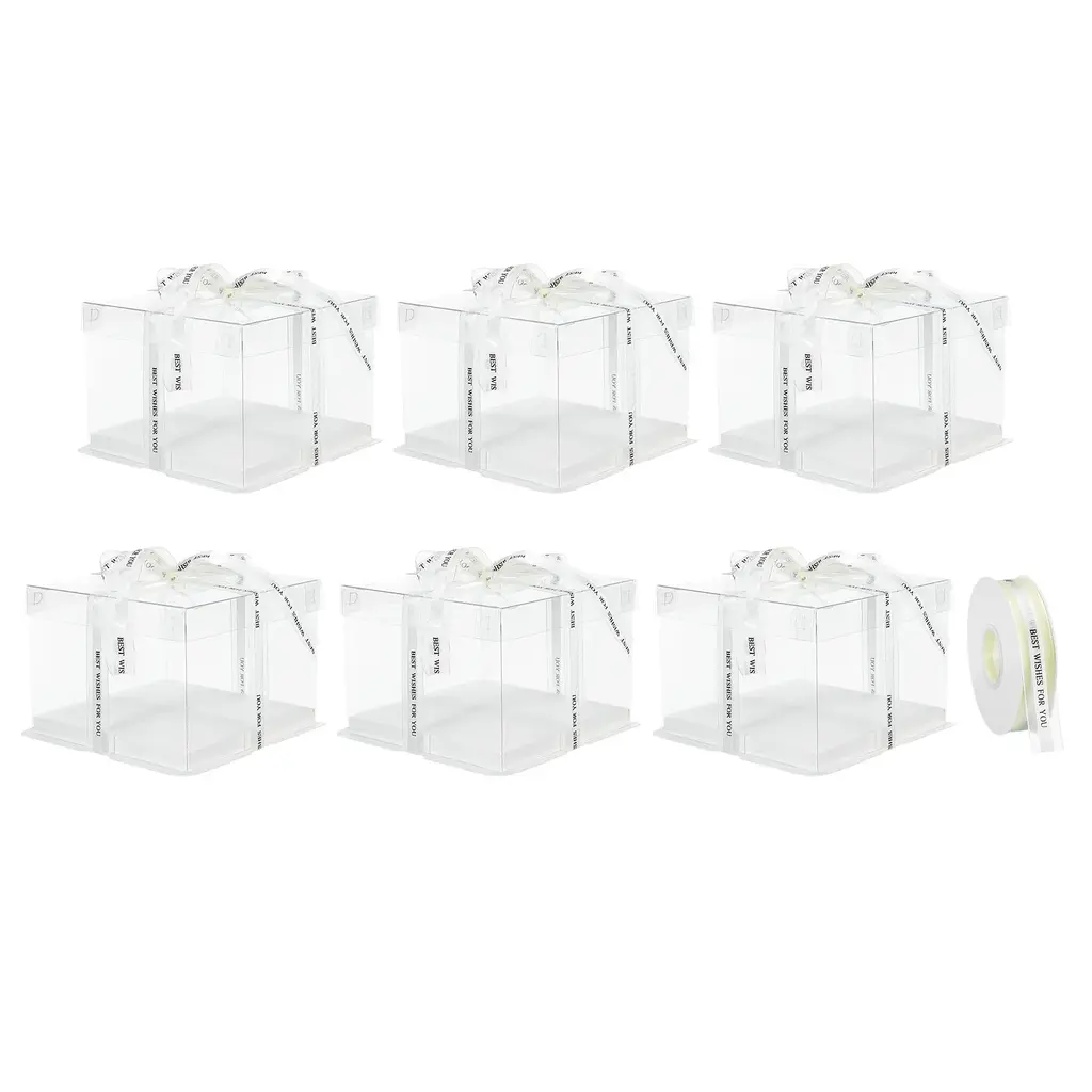 Clear Cake Box With Ribbon, 6Pcs 7"x7"x5" For 4 Inch Cake Packing - White - 12"x12"x14"