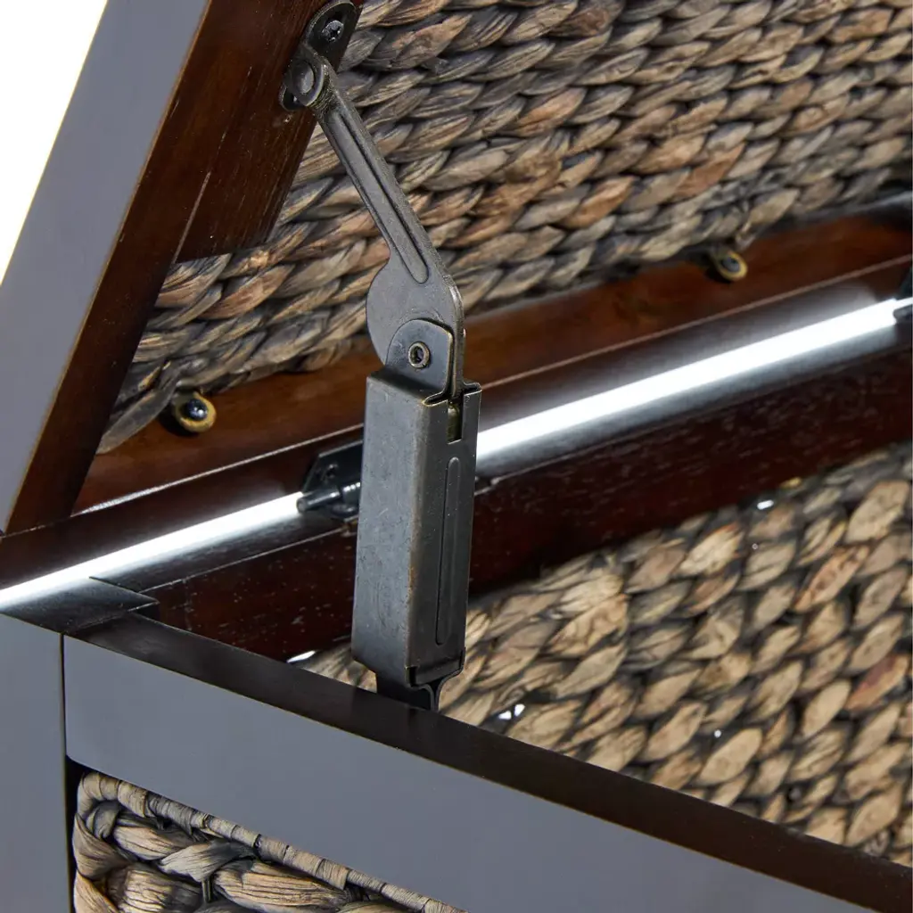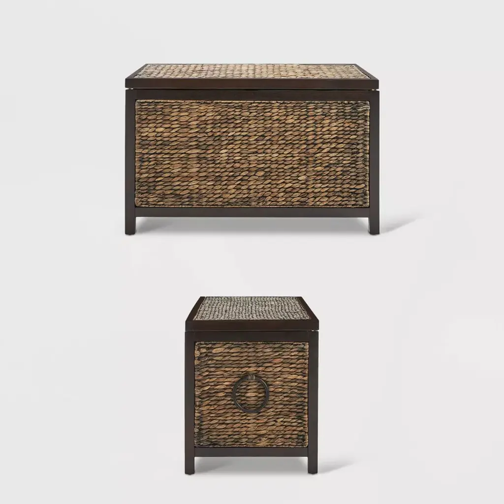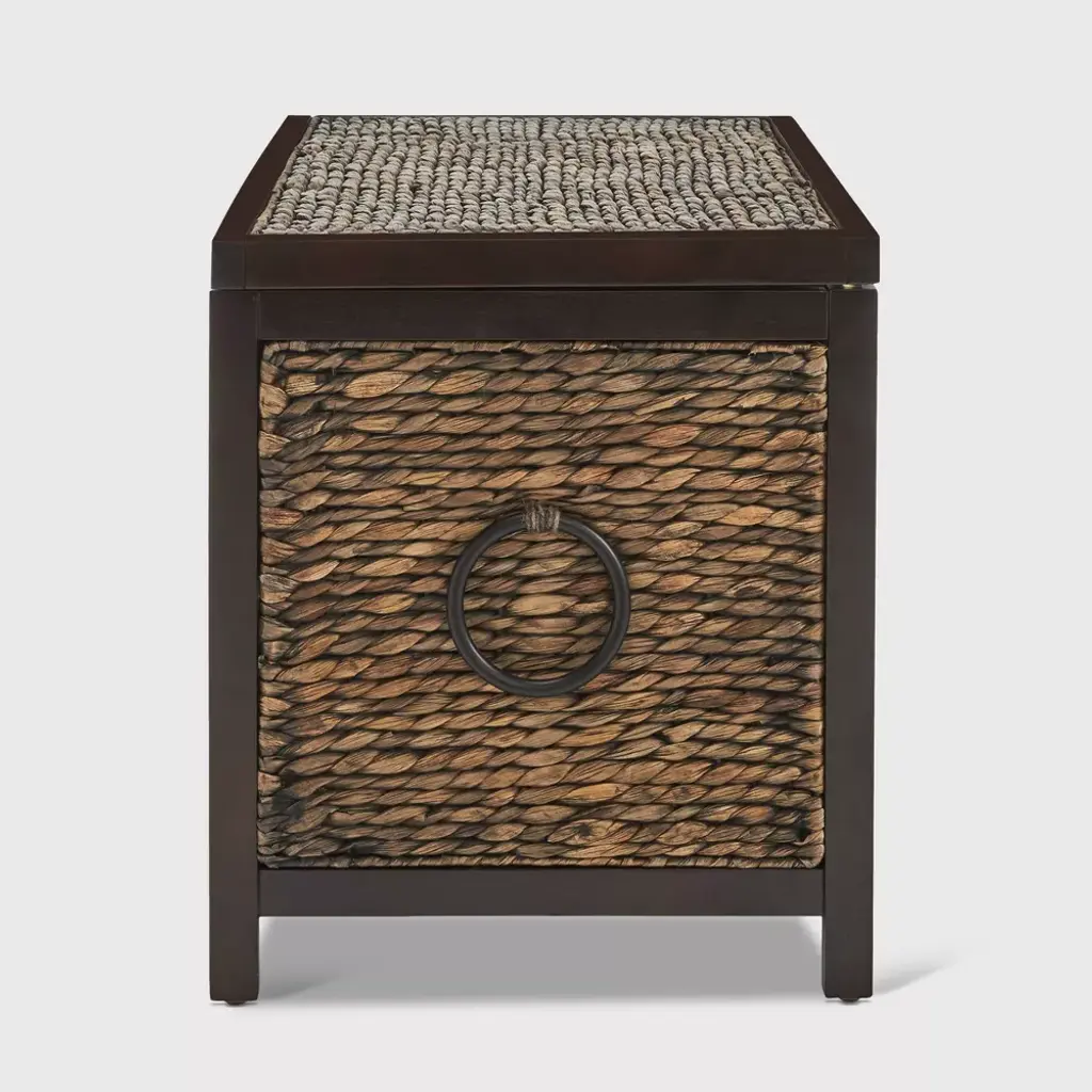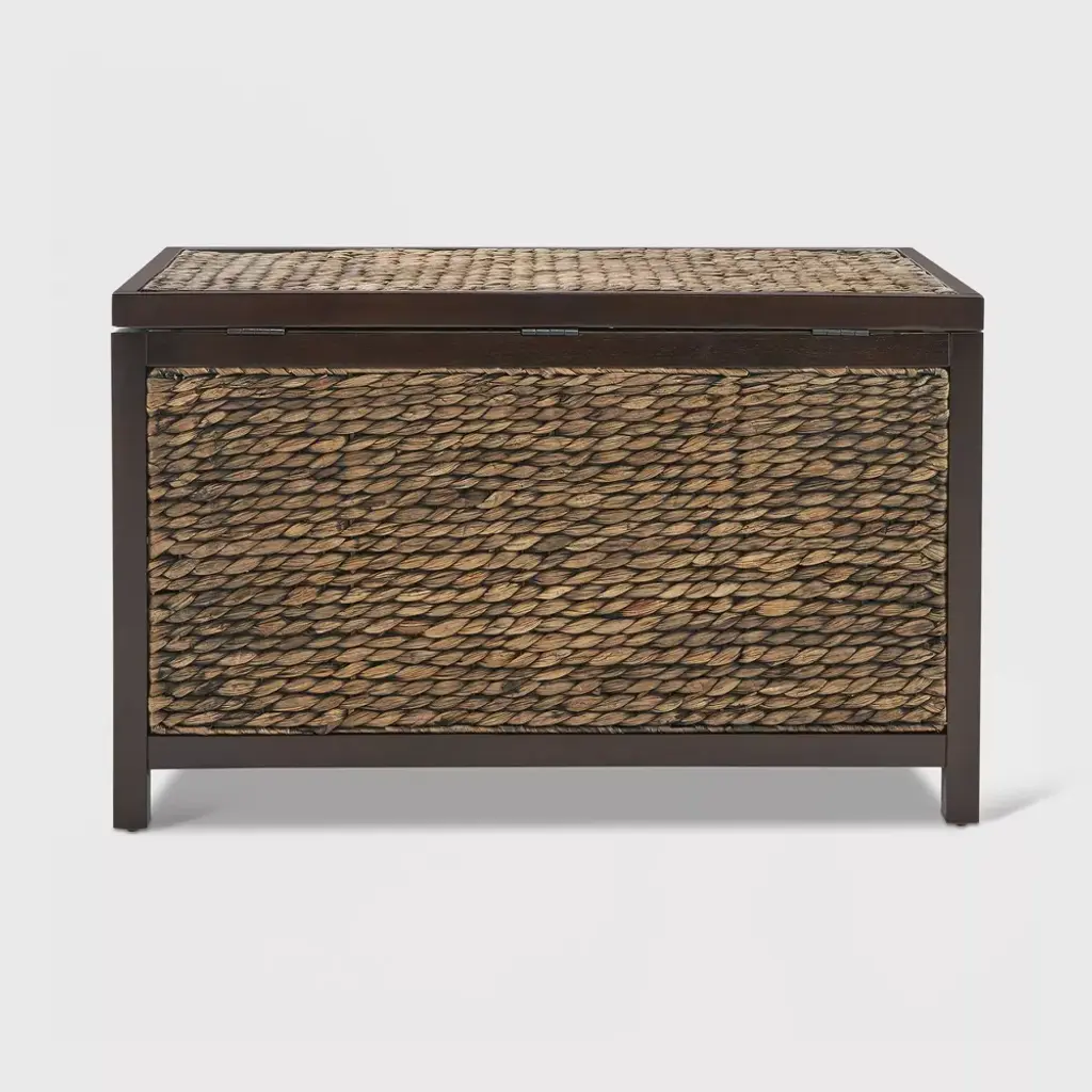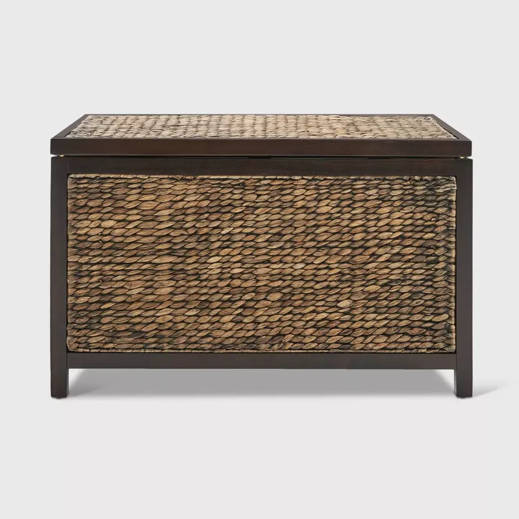 ClickDecor delivers products that let you live your best life at home. We've assembled a broad range of practical and functional home furnishing solutions that provide a modern look, focusing on small-space living that will stay within your budget. Organizing and storing all your keepsakes is now more convenient with the Wilson Wicker Trunk. It's a practical storage solution that not only de-clutters your living area but also adds a rustic appeal to your home. The Wilson is a good ol' country farmhouse trunk made with a solid Acacia wood frame and handwoven in natural water hyacinth in black, brown, and gray for a beautiful, weathered look. Decorative rounded handles on each side make it look even more vintage. At 30" wide and 16" deep, this wicker storage chest provides plenty of room to hold all your essentials. Place it at the foot of your bed in the bedroom as a blanket trunk, or keep it in the bathroom to store linens and towels. It's also perfect as a wicker toy box in the kid's room or living room or as a shoe basket in hallways or entryways. The flip-top lid opens and closes smoothly, and makes accessing or storing your belongings easy. A safety-lock hinge keeps the lid open, so you don't have to worry about it jamming your or your kiddo's fingers. Lightweight items can be placed on top for even more useful space. With the ClickDecor Wilson Wicker Trunk, your household necessities are readily available but out of the way. Order today for a functional and versatile storage piece that'll add cozy warmth to your decor.DimensionsHeight: 18 inchesWidth: 30 inchesDepth: 16 inches