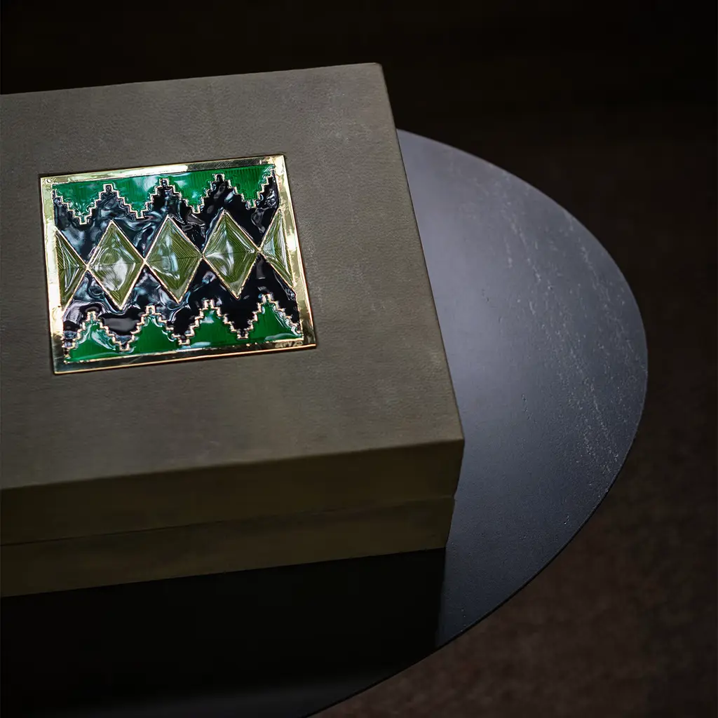 The “Carré Cloisonné boxes” by Piccoli Smalti are refined objects designed to blend functionality and a jewel- like aesthetic. The square box is completely finished in a delicate, ivory color, parchment covering. The top cover is decorated with a precious carré cloisonné handcrafted in Tuscany with emarald green geometric details colored. The inside part is displaying a single capacious compartment in order to accomplish different uses.