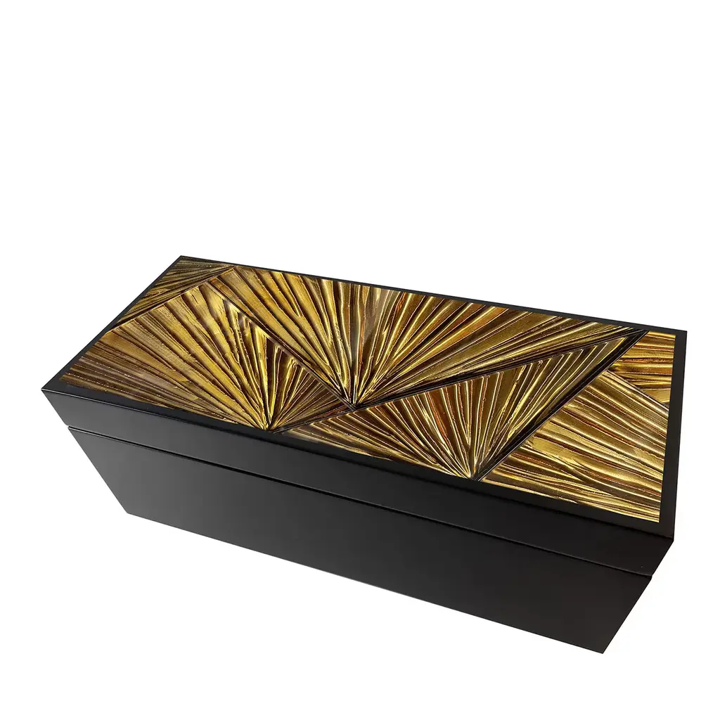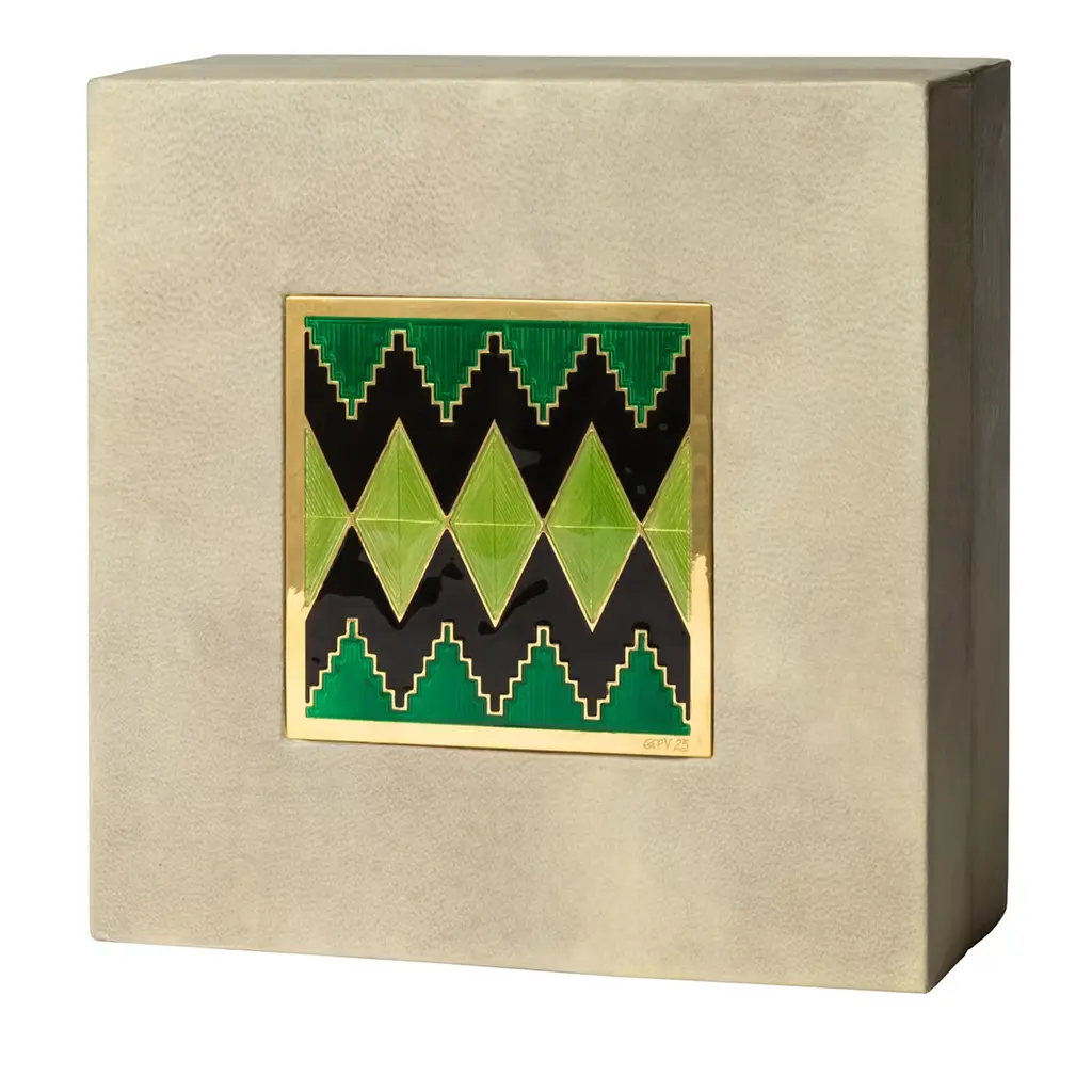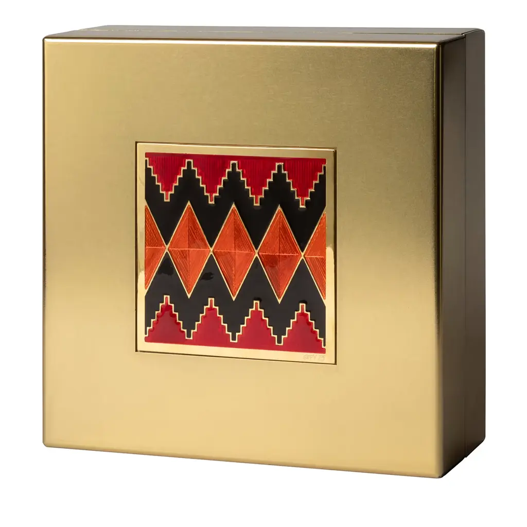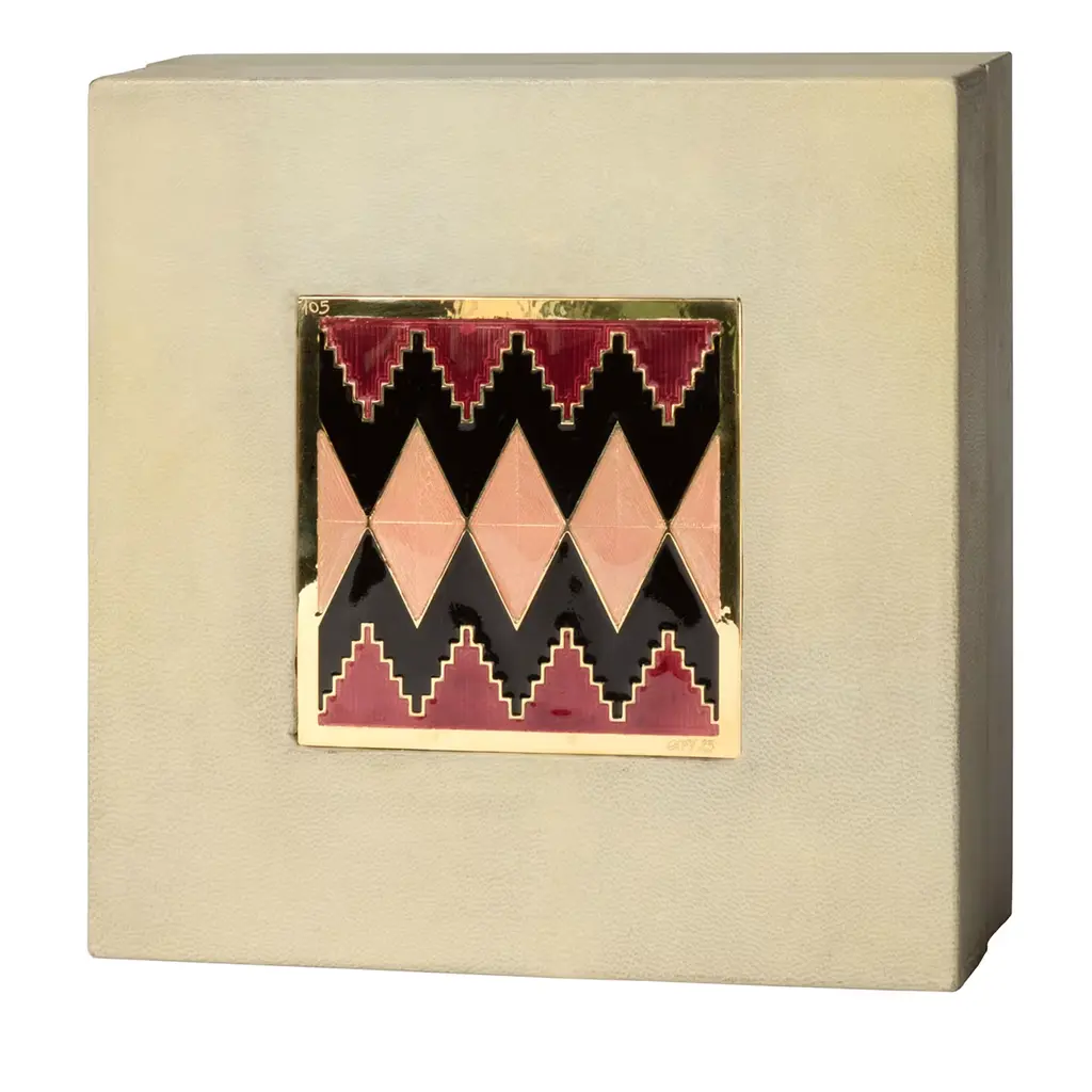 The “Carré Cloisonné boxes” by Piccoli Smalti are refined objects designed to blend functionality and a jewel- like aesthetic. The square box is coated in satin brass. The top cover is decorated with a precious carré cloisonné handcrafted in Tuscany with red and black nuances geometric figures colored. The inside part is displaying a single capacious compartment in order to accomplish different uses.