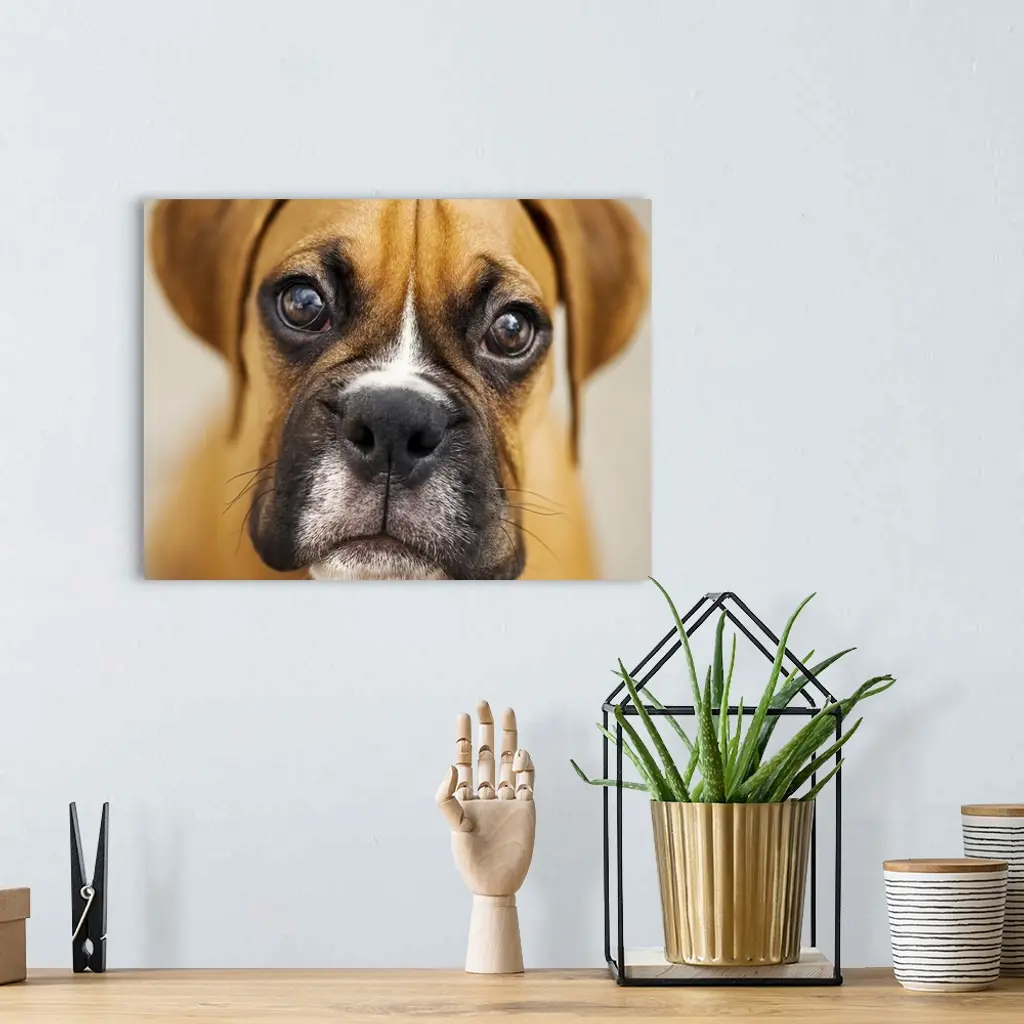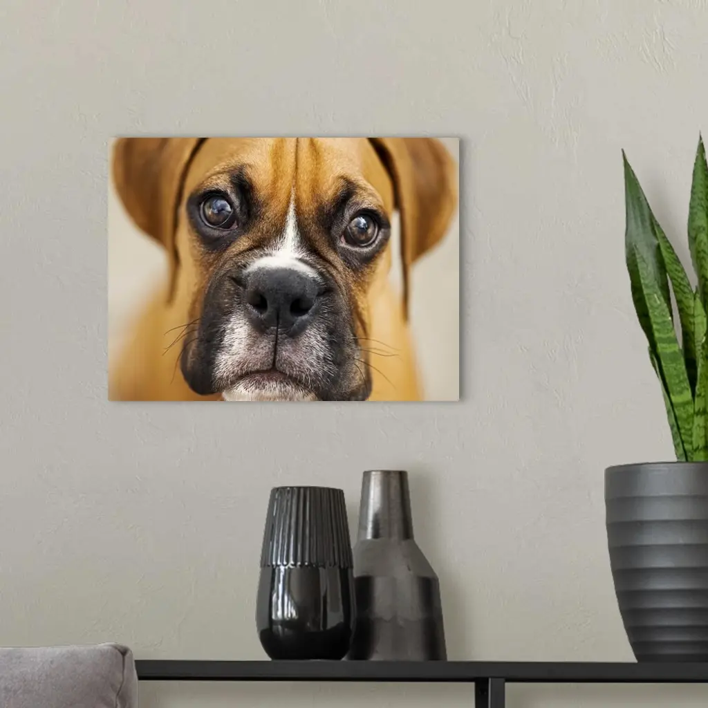 Close up of boxer puppy. wall art for home and office decor. Discover canvas art prints, photos, mural, big canvas art and framed wall art in GreatBigCanvas.com's varied collections.