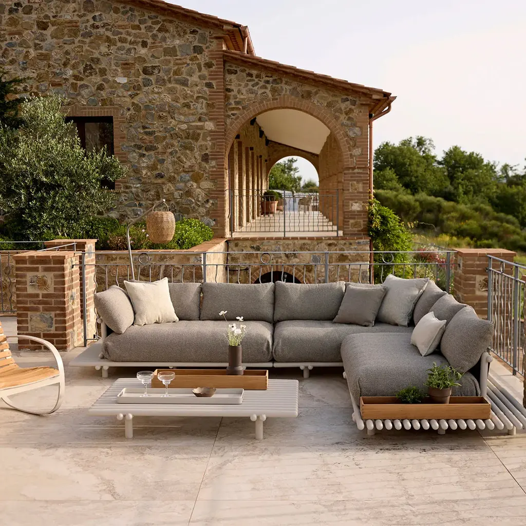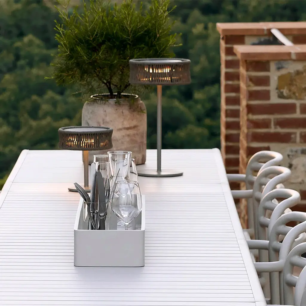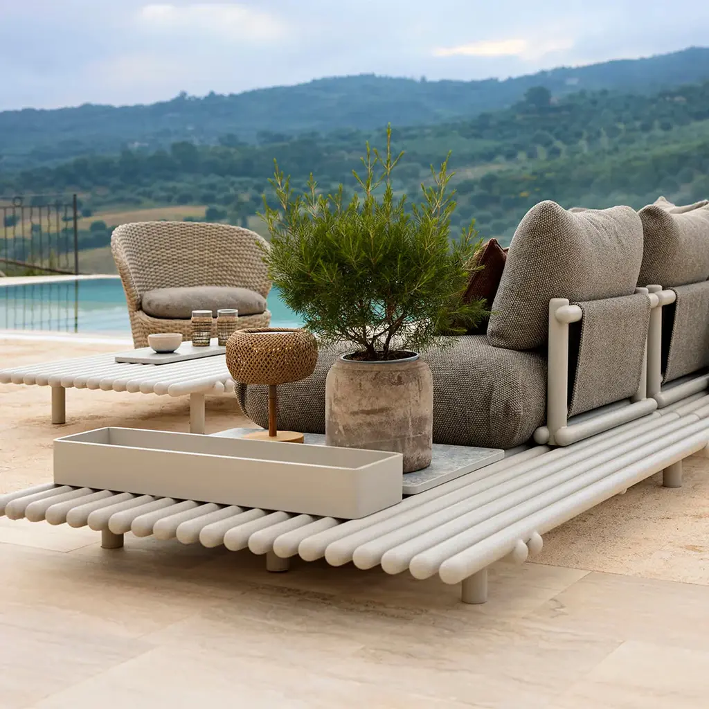 The Club storage box brings modern practicality to your outdoor space. Designed to be paired with the Sticks coffee table or the Sticks platform module to enhance your lounge setup providing functionality and refined storage options. The Club storage box is multifunctional dà ©cor, where you can let your creativity free. For instance, it is ideal for creating a lush, vertical plant wall along the back of the Sticks platform sofa. It can also be used on the Sticks coffee table and decorated with small decorative items, adding both style and functionality to your outdoor lounge space. The storage box is available in powder-coated aluminium for a contemporary and minimalist look or choose one in certified teak for a natural warm touch to your space.
