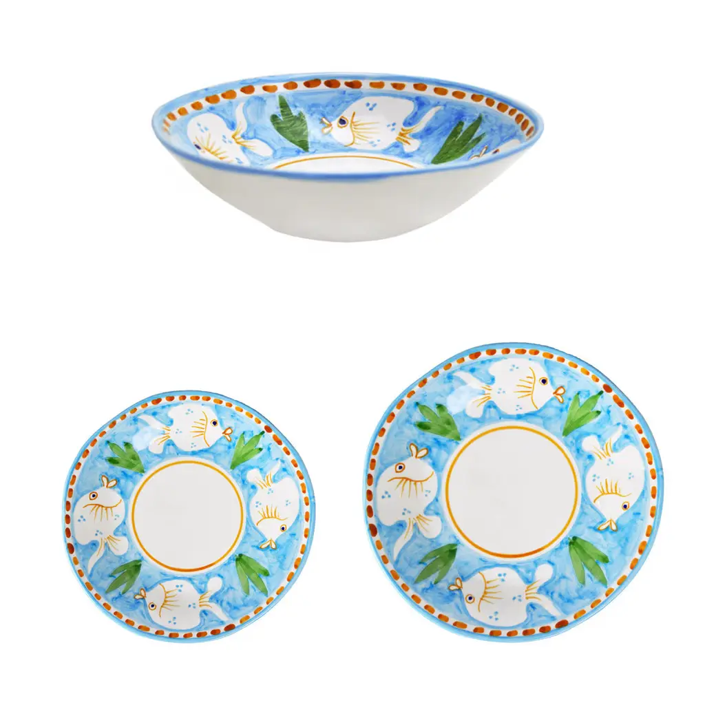 It was only a matter of time before Herend's figurines finally crossed over to dinnerware. The new Aquatic collection features four different motifs: a raspberry seahorse, a rust tulip shell, a green scallop shell and a blue starfish. Hand painted in Hungary. Now the biggest porcelain manufactory in Europe, Herend was founded in 1826 to produce earthenware in the small Hungarian village for which it was named. At the time, Hungary was flooded with low-cost pottery, but in 1839, Mor Fischer became the Manufactory’s new owner and he decided to focus on producing dinnerware replacement pieces for Europe’s royal families to complement their valuable porcelain patterns from Germany and the Far East. As his client base grew, Fischer commissioned his artists to begin designing dinnerware patterns of their own. Queen Victoria’s 1851 purchase of a large set for Windsor Castle was a milestone, setting the stage for aristocrats throughout Europe to clamor for Herend in their estates. In the 1850s, Herend added meticulously-crafted figurines to its creations. Herend’s trademark fishnet pattern, which is widely recognized and prized as Herend’s signature design, started in 1858 when an artist who was intrigued with a Chinese plate’s fish scale design painted it onto a rooster figurine to imitate feathers.