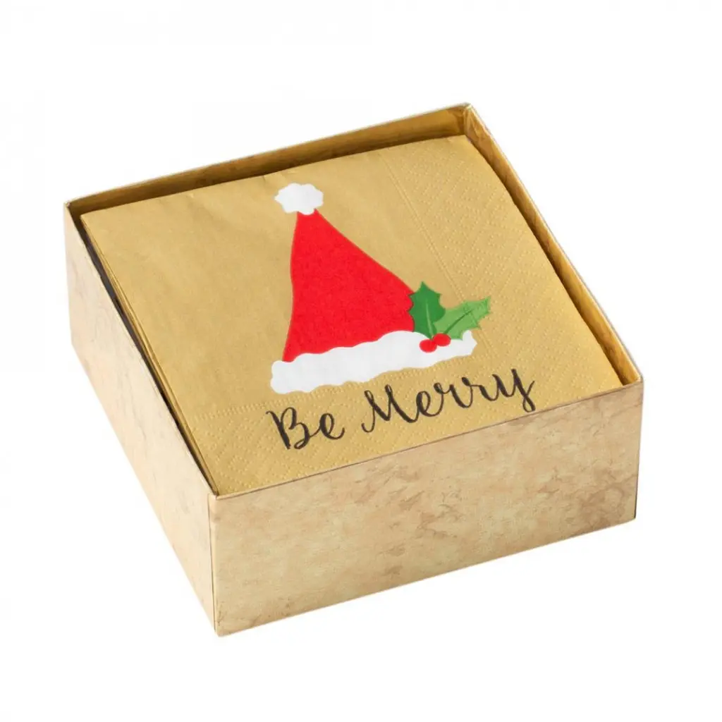 Cocktails With Santas Boxed Paper Cocktail Napkins , 40 Per Box