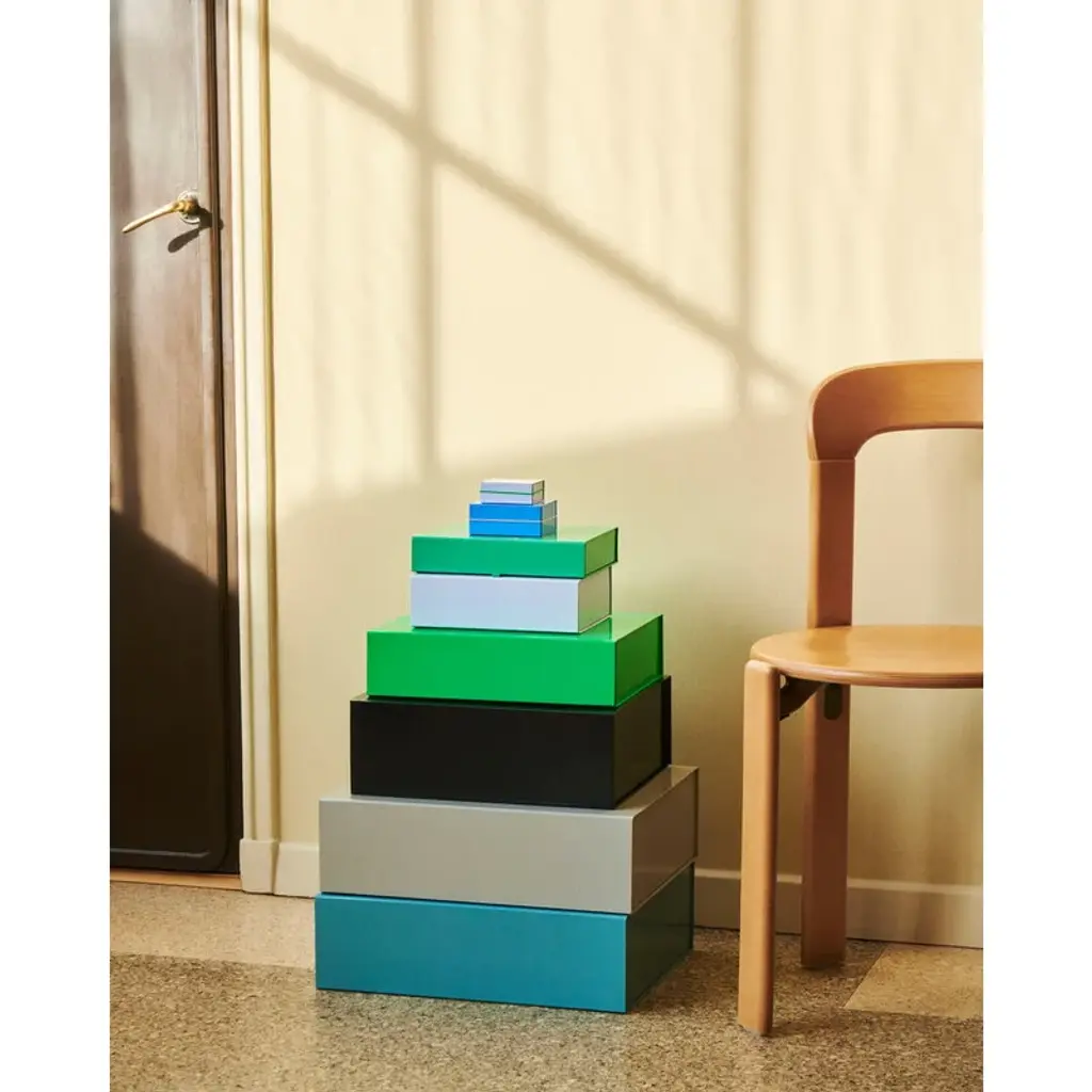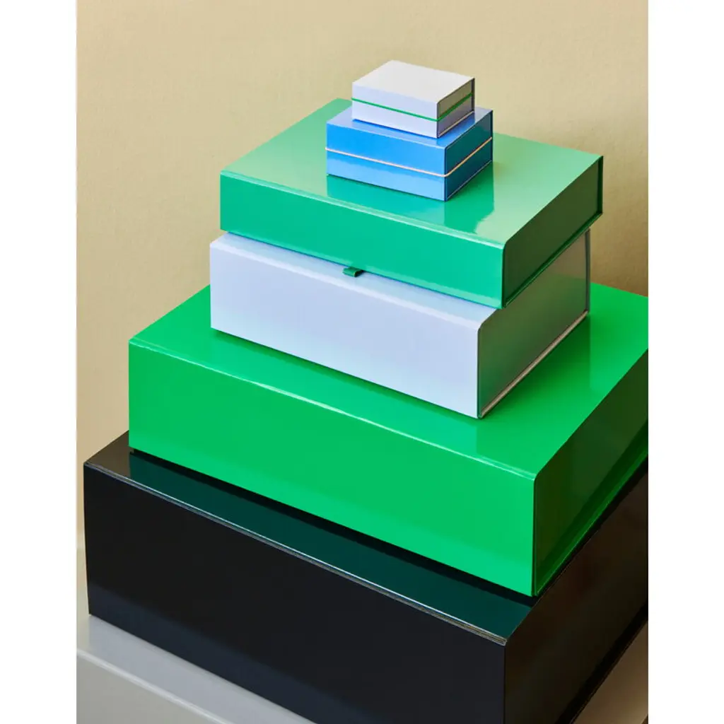 HAY's Color Storage jewelry boxes make decluttering fun with their bright palette of colors. Made of sturdy cardboard, the Color Storage boxes feature a convenient magnetic closure and different-sized compartments that are specially designed for storing small items. As the name suggests, the Color Storage box is perfect for jewelry, but it also welcomes other precious miniature treasures inside it! Pick and mix different colors and sizes and create a rainbow of Color Storage boxes, or tone things down with a monochrome combo.