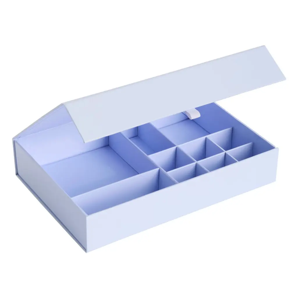 HAY's Color Storage jewelry boxes make decluttering fun with their bright palette of colors. Made of sturdy cardboard, the Color Storage boxes feature a convenient magnetic closure and different-sized compartments that are specially designed for storing small items. As the name suggests, the Color Storage box is perfect for jewelry, but it also welcomes other precious miniature treasures inside it! Pick and mix different colors and sizes and create a rainbow of Color Storage boxes, or tone things down with a monochrome combo.