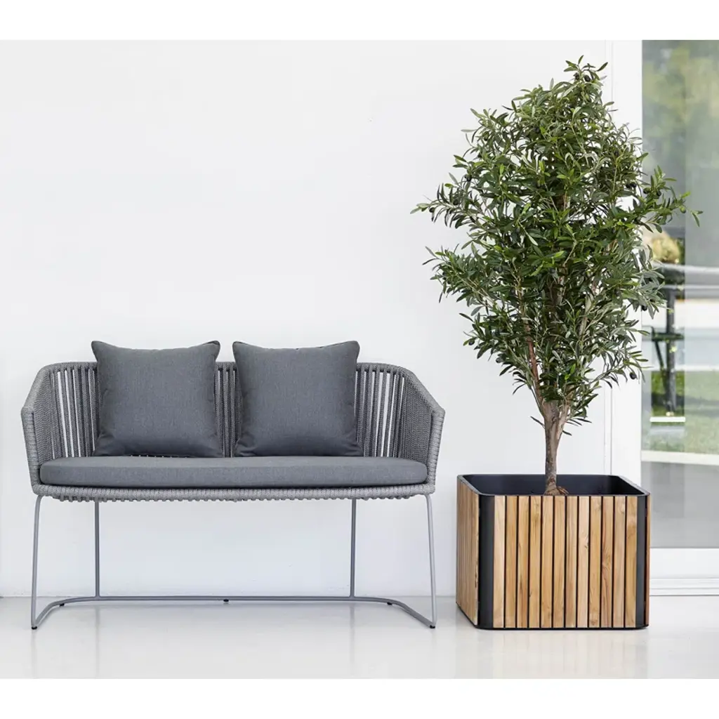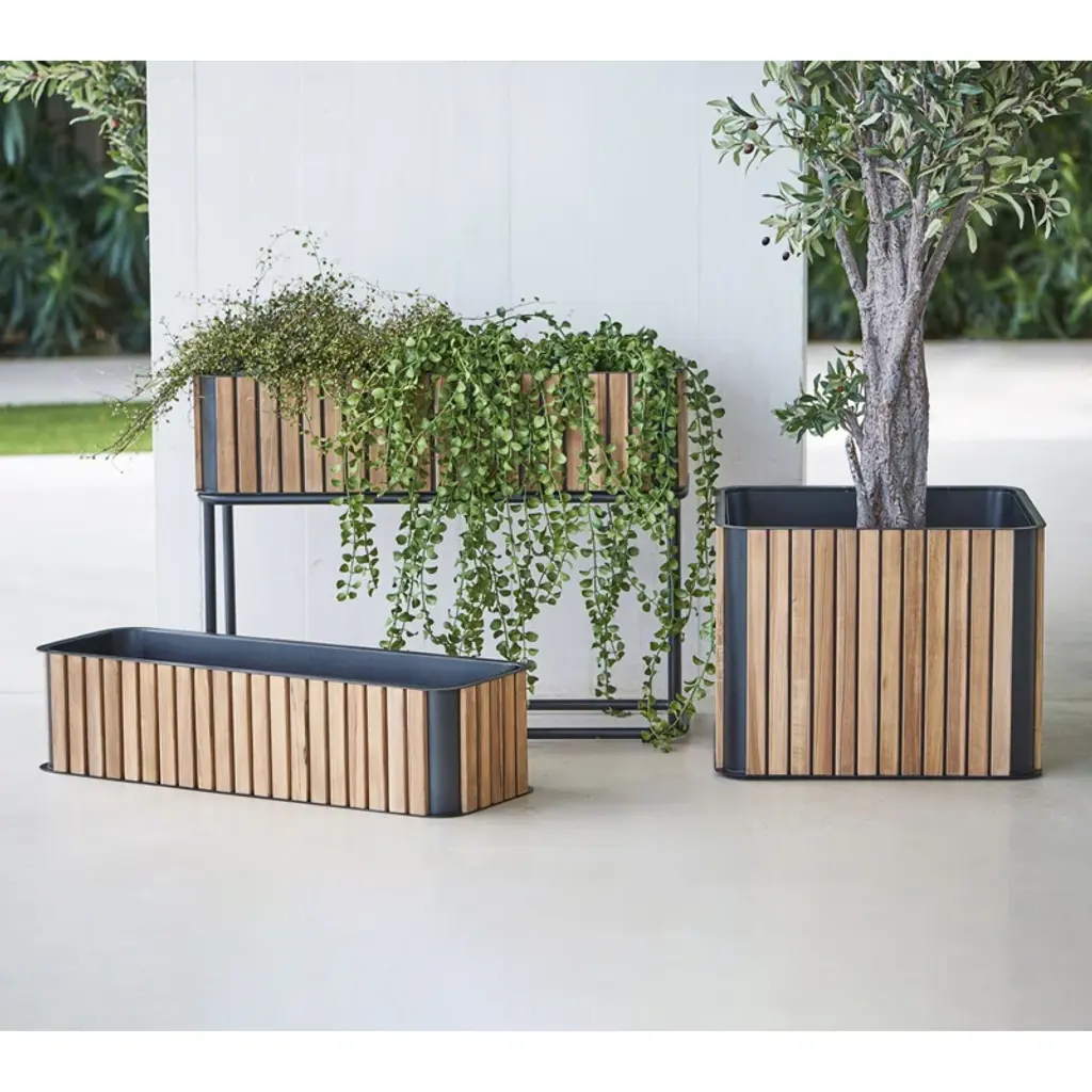 This Combine Planter Box is a modern planter with an exciting design and mix of materials. The warm certified teak and the streamlined powder-coated aluminum give a unique look that fits in most spaces. Cane-line teak is approved and cultivated according to the SVLK certification system. Plant your favorite herbs, flowers, or trees, and add a green spot to your outdoor place. The powder-coated aluminum ensures a resistant surface to knocks and scratches.