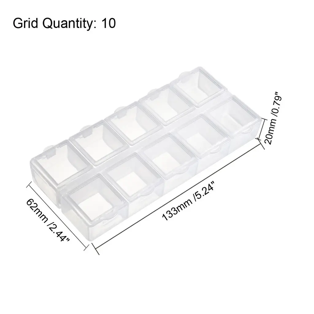 Component Storage Box - Ps Fixed 10 Grids Clear White 133x62x20mm - 10 Grids (1pcs) - Clear