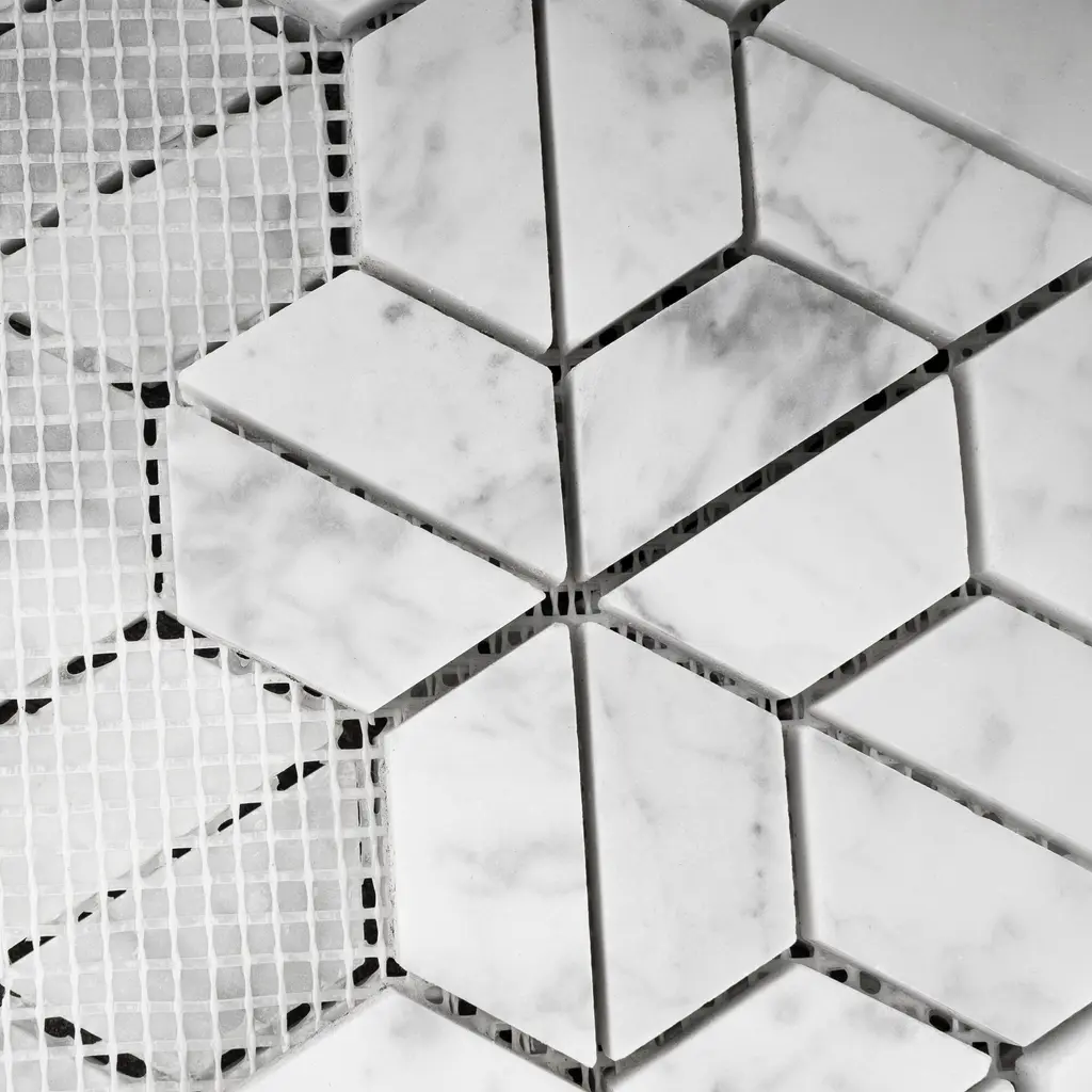 Our new contemporary zellige patterns feature handcrafted tiles that are water jet cut and glued by hand to a mesh backing — making installation a breeze. These tiles are made with zellige cut into diamond shapes each measuring approximately 3.75" x 2.25". This stunning pattern can be subtle when using a similar color grout or make it more dramatic with a contrasting grout color. Brand: Moroccan Mosaic and Tile House Type/style: Floor and Wall Tile Materials: mesh backing zellige tile Dimensions: 12 inches long x 12 inches wide x 0.5 inches thick (each) Square footage per tile/ box: 1 tile=1 square foot, 8 tiles per box (8 sq. ft. per box) Installation: Professional installation is recommended. Pack/case of: 8 tiles per box Handmade, durable, Indoors/ Outdoor, high quality materials, environmentally responsible and resource efficient, low maintenance **Please note: That each tile is hand made individually and minor variations in color, or surface texture are natural characteristics of all our Handmade tile and it 's also part of the Charm.Story Behind the Art: "It's more than tile, it's art." That simple statement is what sets the craftsmanship of Moroccan Mosaic apart from the rest. Based in the small city of Sale, Moroccan Mosaic is a family business going back 4 generations. When Simo, the current head of the business graduated from university in New York, he had little interest in the family business. But on a return trip home, he saw that the business was not doing well and set about reviving it. One important change he made was introducing black, grey, and white designs to appeal to American and European customers. It worked. When he started, they employed 2 workers and now they have nearly 80 on staff. The workshop itself is fairly simple, and the techniques used to create the tiles are steeped in tradition. Some modern equipment is available, though the workers prefer to use the more rustic tools. The creative process is time intensive and done by hand, as Simo insists on no corners be cut or production be rushed. Environmentally responsible and resource efficient, no chemicals are used at any step. For example, colors used come from nature literally. Green comes from mint leaves, orange from orange peel, and black from charcoal. The tiles themselves are a simple mixture of cement, sand, and granite powder. Moroccan Mosaic hires only local workers, teaching them a valued skill as well as paying them fair wages. Simo's goals for his business are to share the tradition of gorgeous Moroccan tile, grow the business, and employ more and more workers. What is Worldstock? The handcrafted touch of artisan skill will create variations in color, size and design. Color differences may occur between the actual product and your computer screen. If buying two of the same item, slight differences will occur from piece to piece. Imported Please note: Orders over 180-pounds or in 7 or more boxes will be shipped via Freight carrier and our Oversized Item Delivery/policy will apply. Please click here for more information. Country of Origin: Morocco