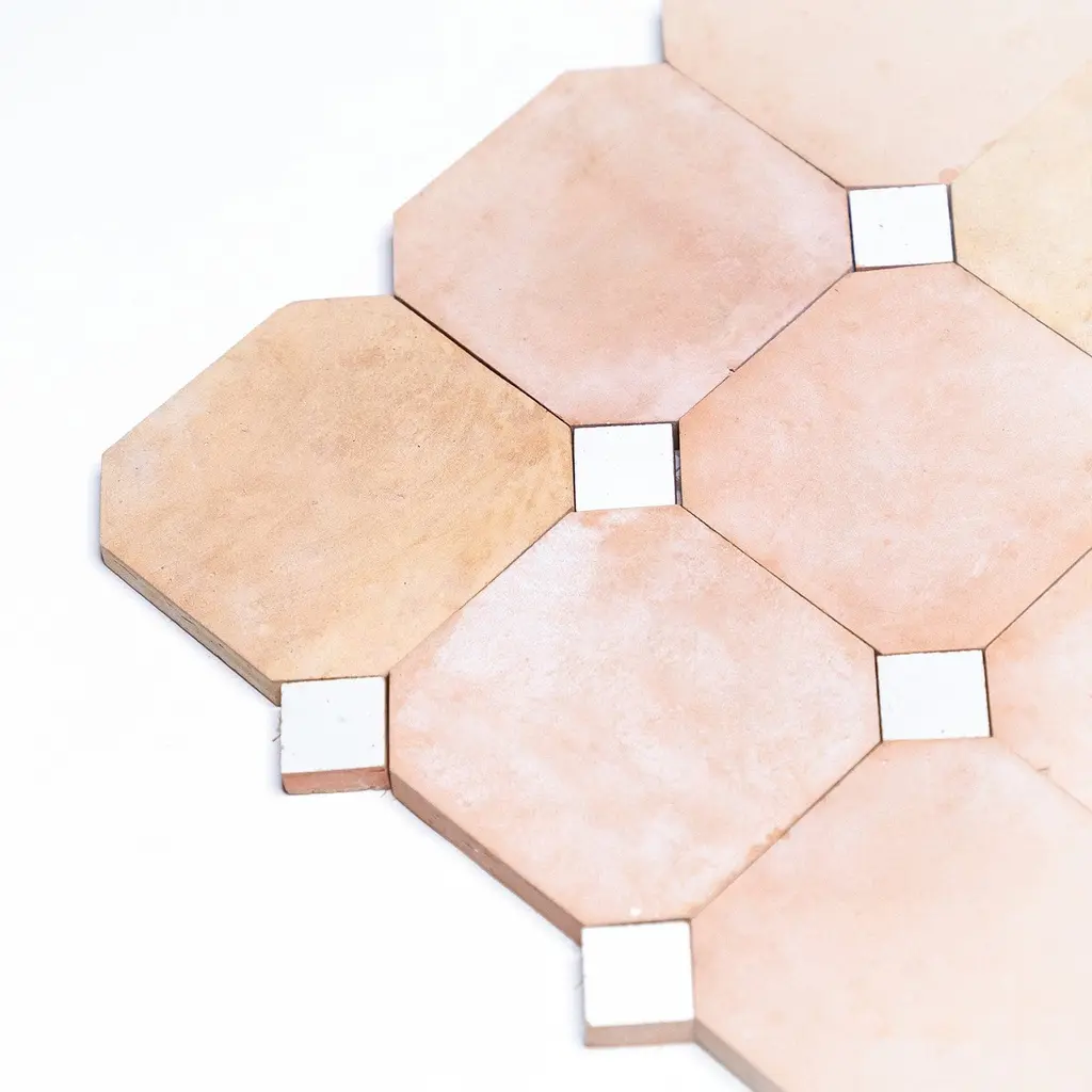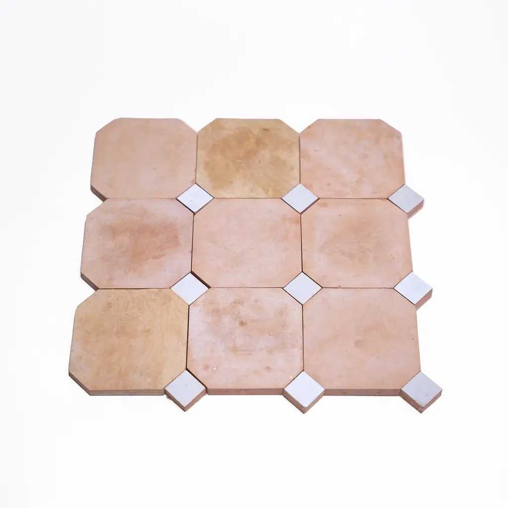 Our new contemporary zellige patterns feature handcrafted tiles that are water jet cut and glued by hand to a mesh backing — making installation a breeze. These tiles are made with our standard 4" x 4" zellige tile cut into octagons and accented with small white diamonds. This stunning pattern has been used for hundreds of years and will never be out of style. Brand: Moroccan Mosaic and Tile House Type/style: Floor and Wall Tile Materials: mesh backing zellige tile Dimensions: 12 inches long x 12 inches wide x 0.5 inches thick (each) Square footage per tile/ box: 1 tile=1 square foot, 8 tiles per box (8 sq. ft. per box) Installation: Professional installation is recommended. Pack/case of: 8 tiles per box Handmade, durable, Indoors/ Outdoor, high quality materials, environmentally responsible and resource efficient, low maintenance **Please note: That each tile is hand made individually and minor variations in color, or surface texture are natural characteristics of all our Handmade tile and it 's also part of the Charm.Story Behind the Art: "It's more than tile, it's art." That simple statement is what sets the craftsmanship of Moroccan Mosaic apart from the rest. Based in the small city of Sale, Moroccan Mosaic is a family business going back 4 generations. When Simo, the current head of the business graduated from university in New York, he had little interest in the family business. But on a return trip home, he saw that the business was not doing well and set about reviving it. One important change he made was introducing black, grey, and white designs to appeal to American and European customers. It worked. When he started, they employed 2 workers and now they have nearly 80 on staff. The workshop itself is fairly simple, and the techniques used to create the tiles are steeped in tradition. Some modern equipment is available, though the workers prefer to use the more rustic tools. The creative process is time intensive and done by hand, as Simo insists on no corners be cut or production be rushed. Environmentally responsible and resource efficient, no chemicals are used at any step. For example, colors used come from nature literally. Green comes from mint leaves, orange from orange peel, and black from charcoal. The tiles themselves are a simple mixture of cement, sand, and granite powder. Moroccan Mosaic hires only local workers, teaching them a valued skill as well as paying them fair wages. Simo's goals for his business are to share the tradition of gorgeous Moroccan tile, grow the business, and employ more and more workers. What is Worldstock? The handcrafted touch of artisan skill will create variations in color, size and design. Color differences may occur between the actual product and your computer screen. If buying two of the same item, slight differences will occur from piece to piece. Imported Please note: Orders over 180-pounds or in 7 or more boxes will be shipped via Freight carrier and our Oversized Item Delivery/policy will apply. Please click here for more information. Country of Origin: Morocco