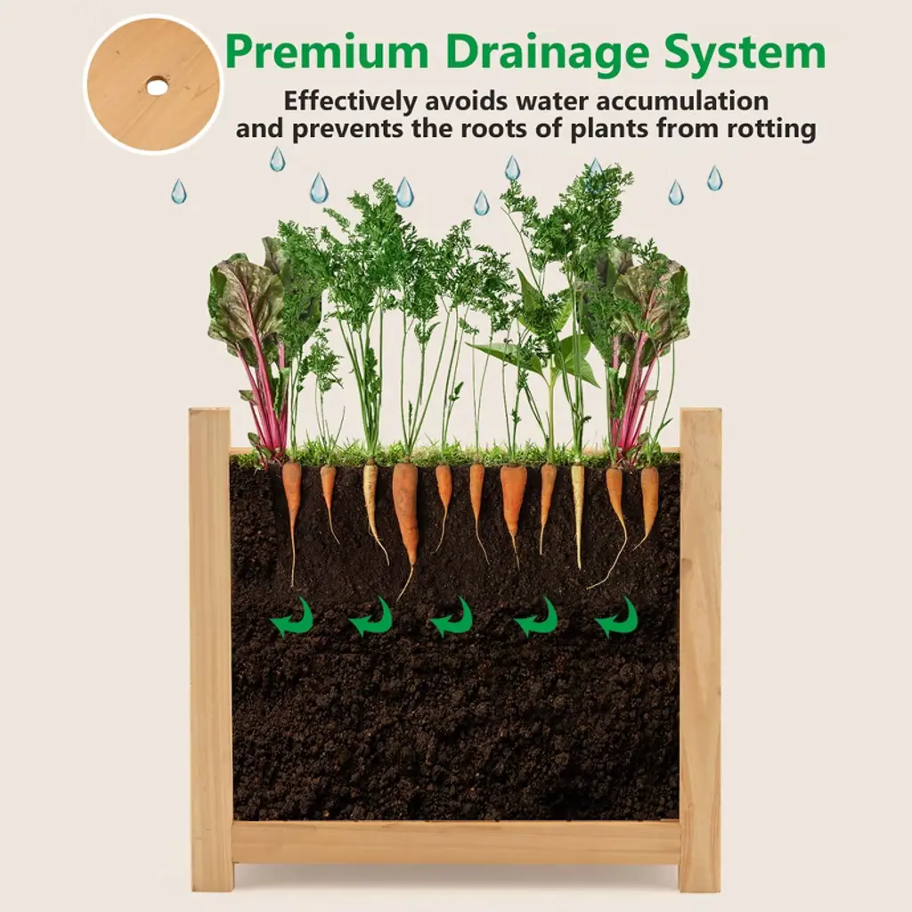 Our wooden folding planting box is an ideal choice for you to grow greeneries. Made of premium fir wood, the planting box is sturdy and strong enough. Therefore, it can serve you for a long-lasting time. What’s more, the planter is foldable and portable. You can fold and move it to other places with no effort. The natural color adds a touch of elegance to the plants your grow, perfectly decorating your backyard. The planter box is also designed with the drainage hole and raised legs to grow your plants better. Whether you want to grow flowers, herbs, fruits or vegetables, this wooden planting box will satisfy your demands. FeaturesHigh-grade fir wood for high stability and durability Detachable bottom makes maintenance and assembly much easier Drainage hole prevents water accumulation and protects plants’ roots Raised legs are effective to prevent dampness Ideal for patio, garden, deck, etc. Suitable to grow a variety of plants like fruits, flowers and so on Appealing appearance adds a piece of elegance Easy to assemble with tools and quick to foldColor: Natural Material: Fir Wood Overall Dimension: 15" x 15" x 14" (L x W x H) Folding Dimension: 15" x 14" x 3.5" (L x W x Thickness) Weight Capacity: 44 lbs Net Weight: 5 lbs Package Includes: 1 x Planting Box