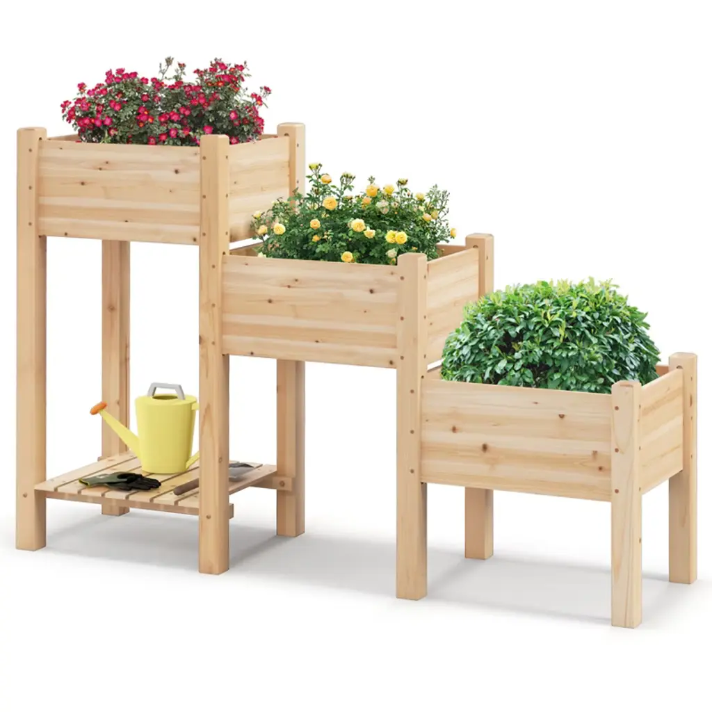 Costway 2 Pcs Solid Wood Planter Box With Trellis Weather-resistant 25"x11"x30"