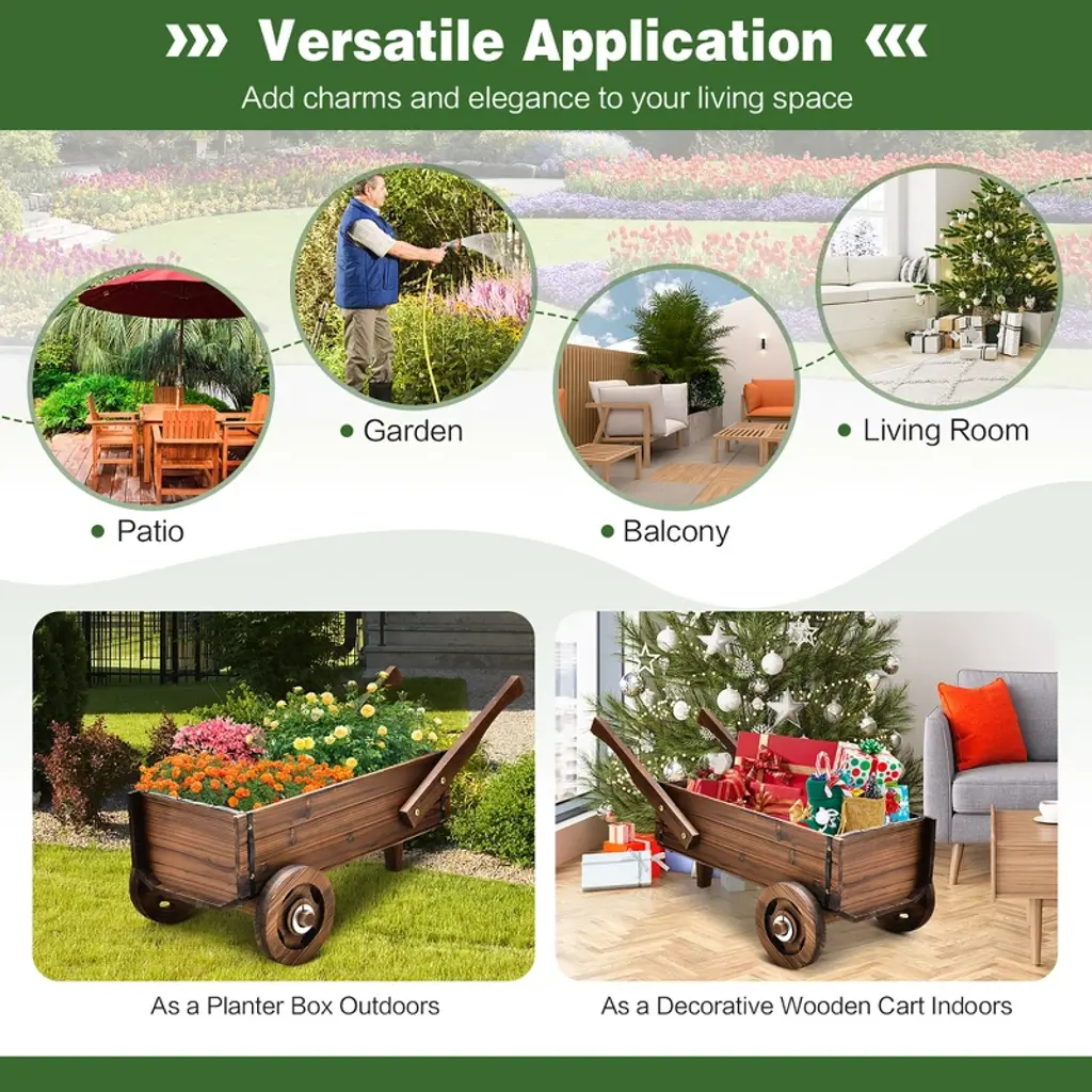 Costway Decorative Wagon Cart Plant Flower Pot Stand Wooden Raised Garden Planter Box
