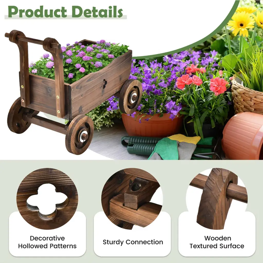 Costway Decorative Wagon Cart Plant Flower Pot Stand Wooden Raised Garden Planter Box