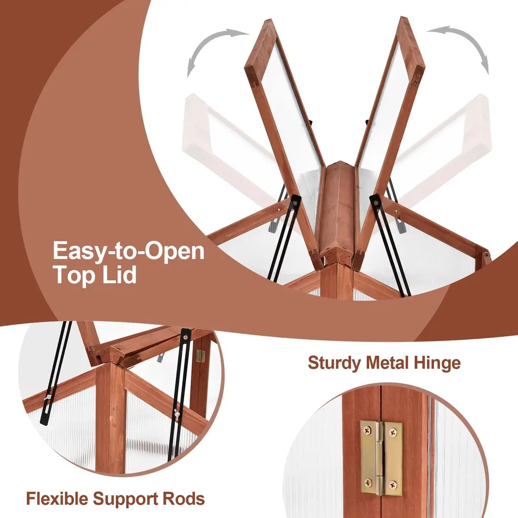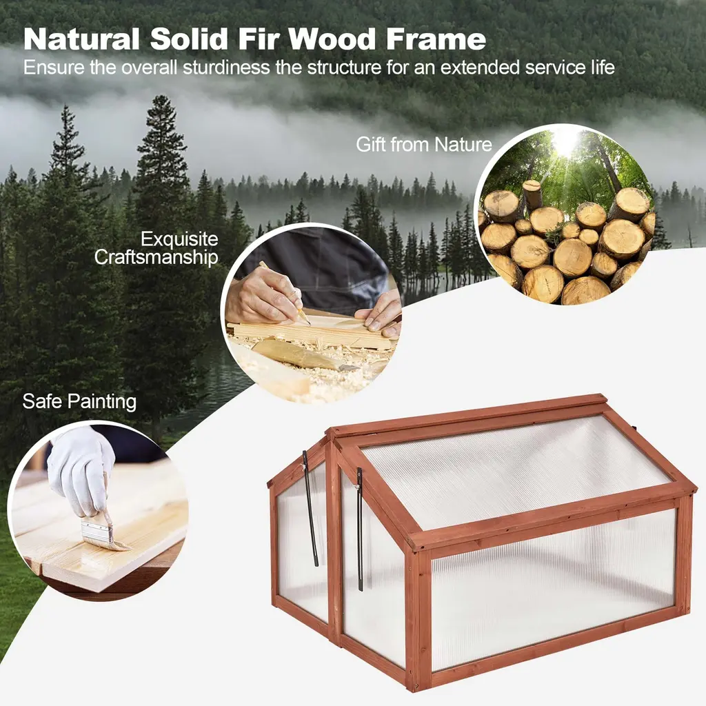 Costway Double Box Garden Wooden Green House Cold Frame Raised Plants - Mini