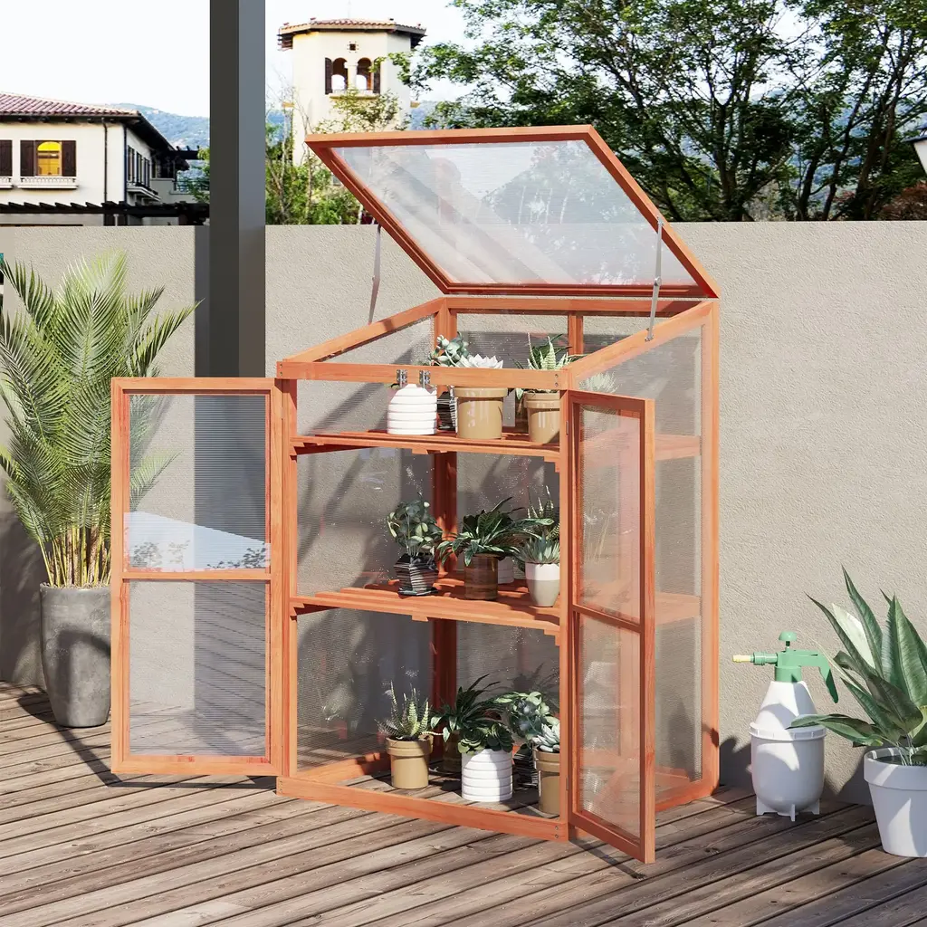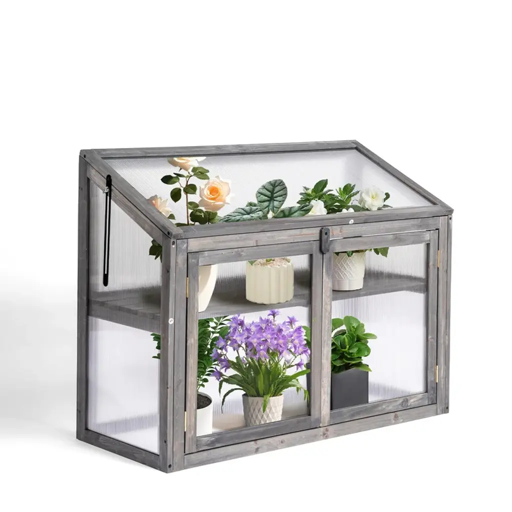 This large, solid wooden greenhouse is perfect for extending your growing season and protecting your plants. Flowers in it can enjoy sunbathing and grow healthy in cloudy, in snowy or in other conditions. Feature with solid fir wood frame, the greenhouse is sturdy and sturdy. Feature with double box, allowing you to plant many your favorite plants in all season. Perfect size for the mini greenhouse, you can put it in your backyard, garden, yard and other living space. It will be a functional greenhouse for your planter, but also a great additional to your outdoor living space.FeatureSolid wood frame, sturdy and sturdy Glazing board keeps your plants warm PortableDouble planting box, providing enough planting space for your favorite flower and plantsExtending growing season and protecting your lovely flowers and planterHinged lid with adjustable stays, and the hinge long 10''Assemble requiredSpecificationMaterial:Chinese fir wood and PC boardOverall dimension:35.5''x31.5''x23.0''(LxWxH)Adjusting hinge length:10''Please refer to the picture to get more size informationProduct weight:13.4lbsPackage include:1 x double box wood greenhouse