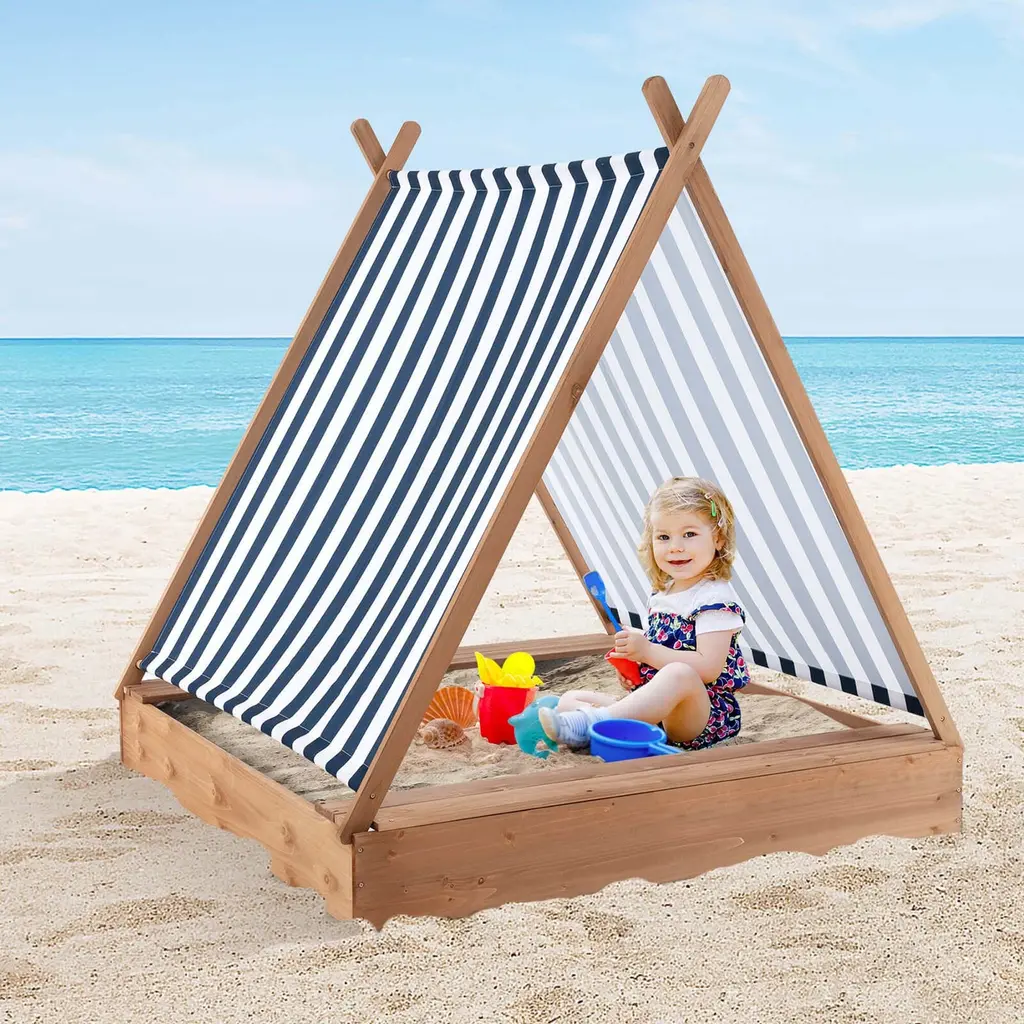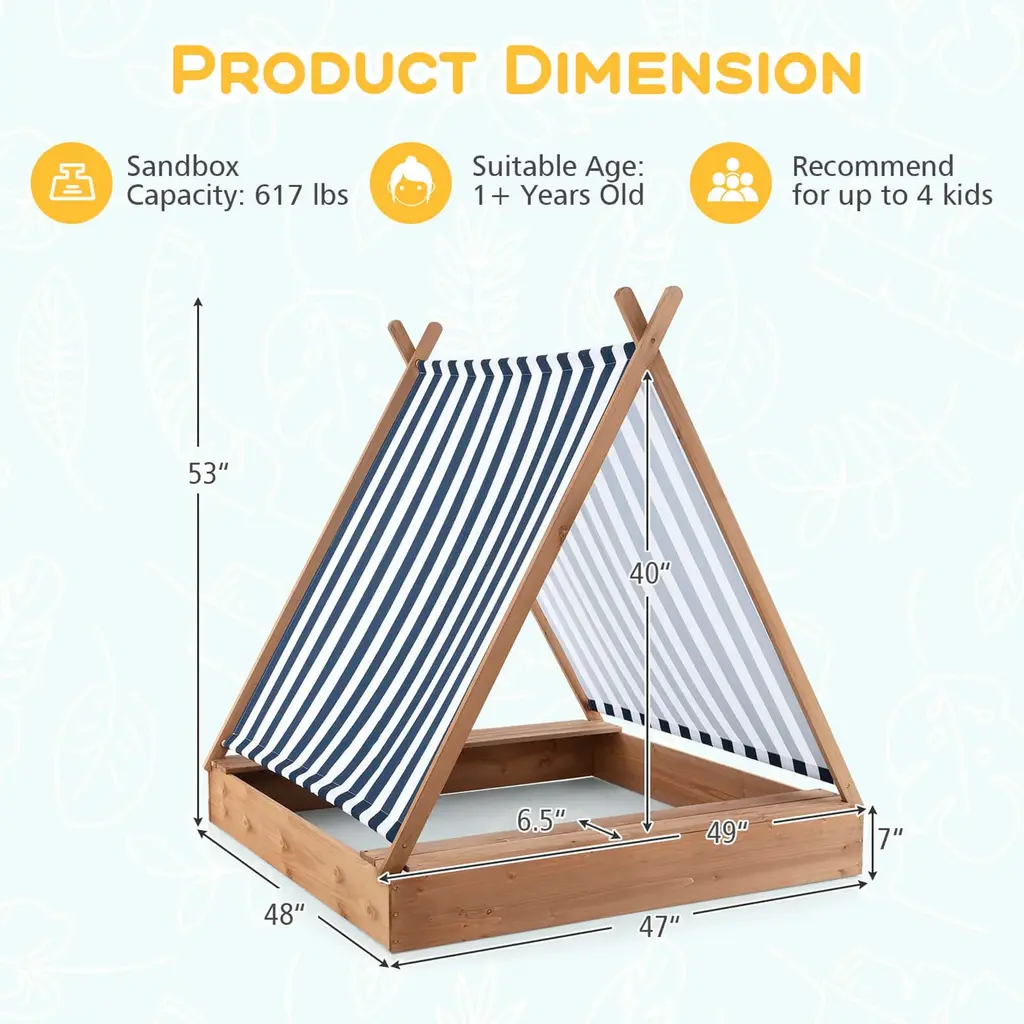 Treat your little ones to endless fun with this beautifully designed sandbox. Featuring a removable canopy made of Oxford fabric. More importantly, the stable frame crafted from crack-resistant fir wood that is a gift from nature provides a secure area to withstand kids’ active playing, without any splinter to hurt your baby’s skin. The large open-ended bottom holds abundant sand and makes cleaning a breeze. In addition, completed with 2 bench seats for up to 4 kids, the wooden sandbox for kids is not just a play occasion but a comfortable gathering spot for friends.FeatureFir wood frame features safe painting and delicate craftsmanship Splinter-free surface protects kids’ delicate skin Sturdy pyramid structure for enhanced stability Widened seat boards ensure kids sit comfortably Canopy is made of fade-resistant & waterproof Oxford fabric Easily remove the canopy to create a larger space to play Open-ended bottom to ensure ventilation Surprising birthday or holiday gift for kids Suitable for your backyard, garden, and patio Recommend for up to 4 kids to play togetherSpecificationColor: Natural Materials: Fir Wood, Oxford Fabric Product Dimension: 49" x 48" x 53" (L x W x H) Size of Seat: 47" x 6.5" (L x W) Entrance Height: 40" Seat Height: 7" Net Weight: 20 lbs Weight Capacity of Each Bench: 220 lbs Sandbox Capacity: 617 lbs Suitable Age: 1+ Years Old Package Includes: 1 x Kids Sandbox 1 x Instruction
