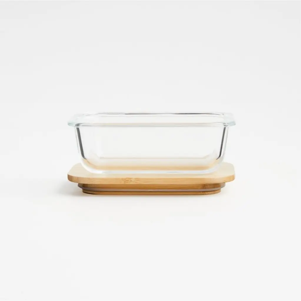 Crate & Barrel Rectangular Glass Storage Container With Bamboo Lid, 1-Cup