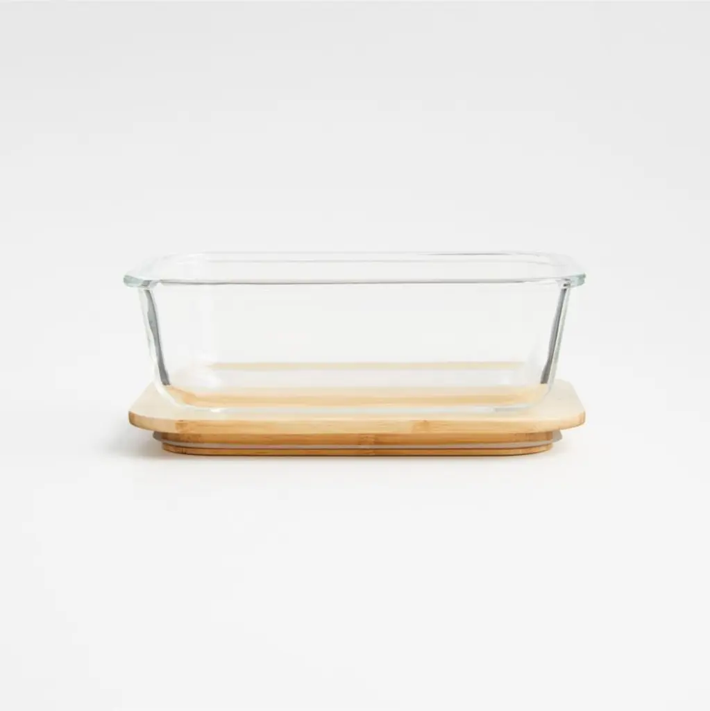 Beautify and organize leftovers, snacks and essential ingredients in our bamboo-topped glass storage containers. Fitted with silicone gaskets, the durable borosilicate glass containers close securely with an airtight seal. Golden bamboo contrasts with the clear glass below for a modern organic look in the refrigerator, in a cabinet or on your desk. With a four-cup capacity, the rectangular storage containers can be used to heat up lunches and leftovers in the microwave or oven and clean up easily in the dishwasher.