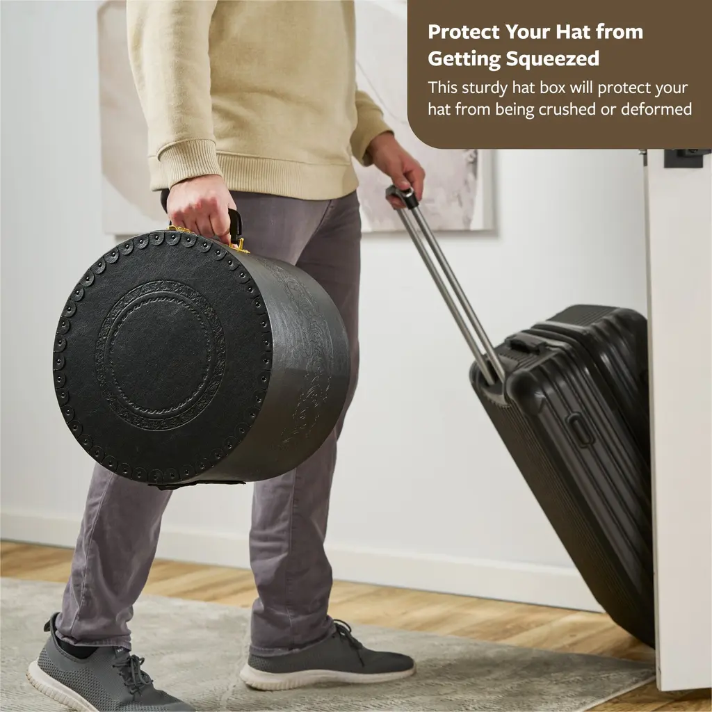 Creative Scents Cowboy Round Hat Box Storage With Gold Locking Lid - 141/2 - Black