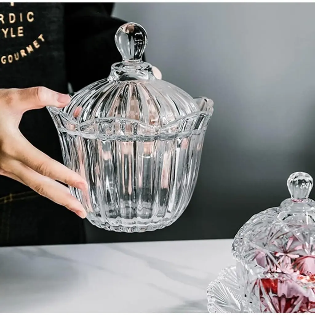 Decorative glass candy tray for candy buffet, made of high-quality lead-free transparent glass, with solid decoration. Very suitable for any activity for daily use. Decorate any space in your home or business. Fill them with candy, biscuits or pretzels at home or at special events, and your guests will like them.