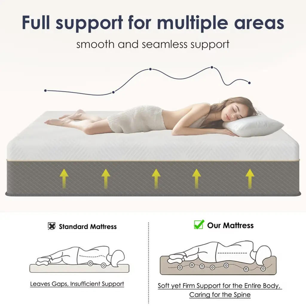 Csbdhome 12 Inch Hybrid Mattress In A Box With Memory Foam And High-grade Cotton Top- Queen