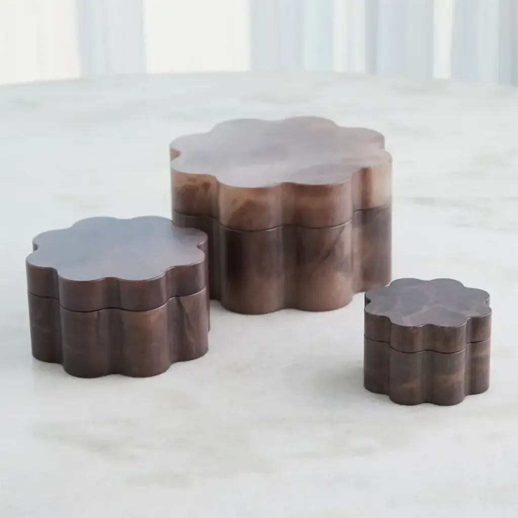 The Cumulus Alabaster Boxes are thoroughly handcrafted from the finest Italian alabaster, with each piece undergoing a meticulous staining process to achieve a rich chocolate hue. The result is a collection of boxes that provide both beauty and functionality. From a fashion forward perspective, Global Views offers accessories, furniture, statement lighting, and an assortment of rugs and mirrors to add beauty and joy to your home.