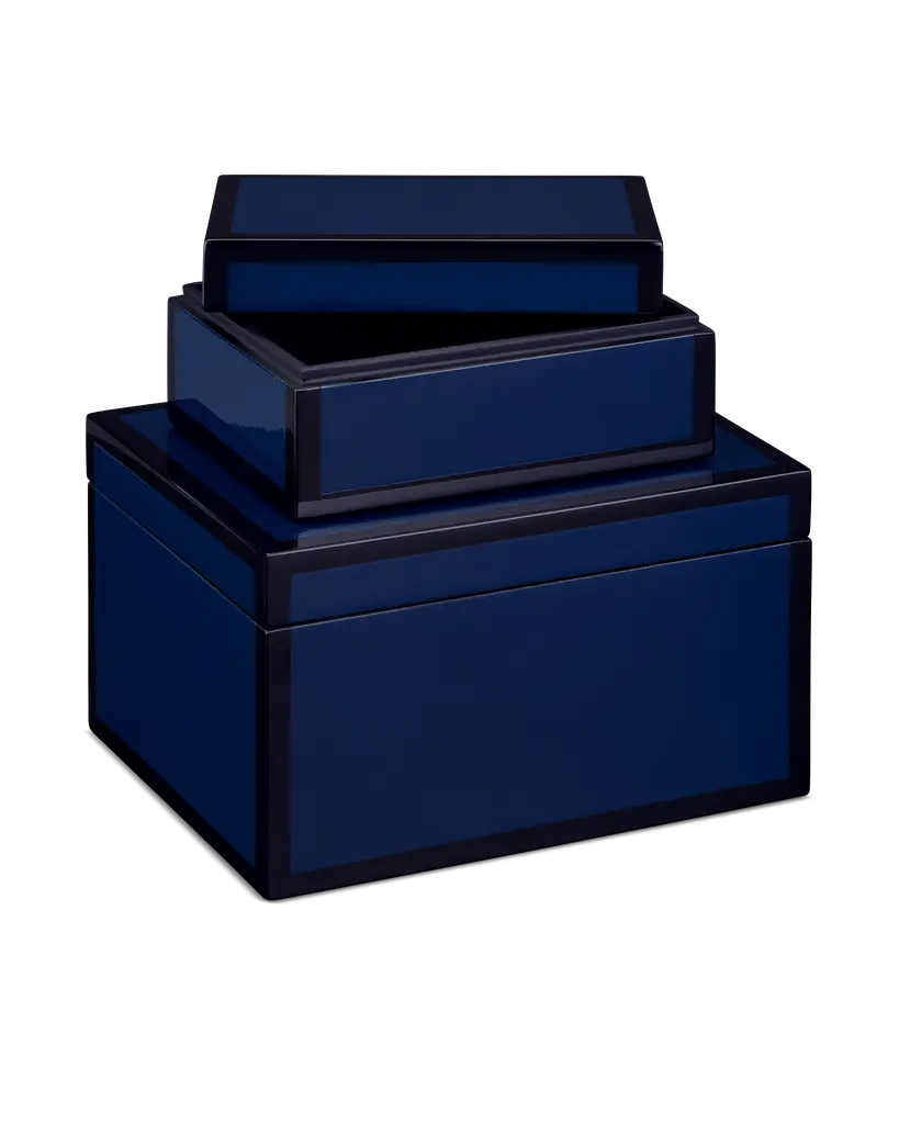 Currey & Company Navy Lacquer Box Set Of 2