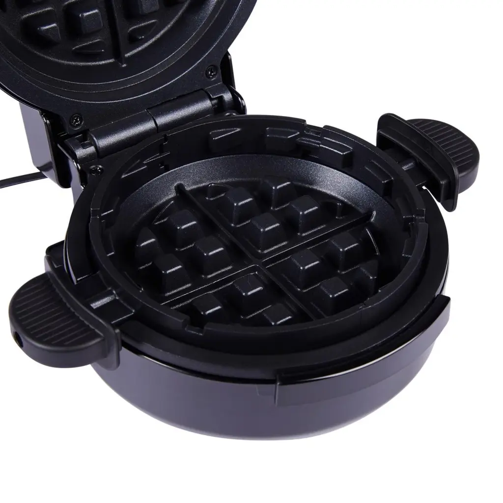 Waffles will never look the same way again once you have the Curtis Stone Stuffed Waffle Maker. Crafted with a 5" diameter and 1.6" deep, it's the perfect size for breakfast, lunch, dinner, snacking or dessert. Fill your waffle with anything your heart desires including fruit, chocolate, cheese, meat, seafood, veggies and so much more. Not only is the cooking fast, but so is the cleanup. Each waffle maker comes with 24 recipes to get you cooking right away, plus a gift box, so you can share—because who wouldn't enjoy getting one of these?Item is Manufacturer Refurbished. When a product is Manufacturer Refurbished, it is tested and checked to operate as a brand new item should. Many times it is as simple as the box being opened by mistake or for quality checks. Once the box has been opened companies cannot legally sell these items as New. Each item is inspected, rerun down the production line and triple checked for quality before being shipped. We are so confident with the quality of our Factory Remanufactured items that we offer a great return policy with every purchase, so buy with confidence!
