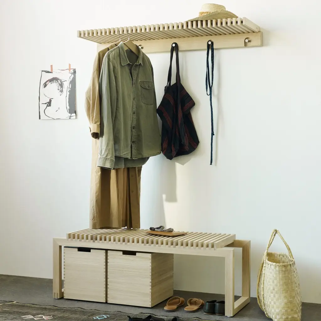 The Cutter Box offers a beautiful storage option for your family's items. Available in high and low sizes, each box is outfitted with four discreet wheels, making it easy for you to store and access your belongings. Pair a few boxes with the Cutter Bench and Cutter Wardrobe at your home's entrance to create an easy and effective space to house your shoes and outerwear. Or neatly file yours under the Cutter Stool for tidy indoor or outdoor organization: We use ours to keep periodicals, slippers, sunscreen and kids' outdoor toys discreetly tucked away.