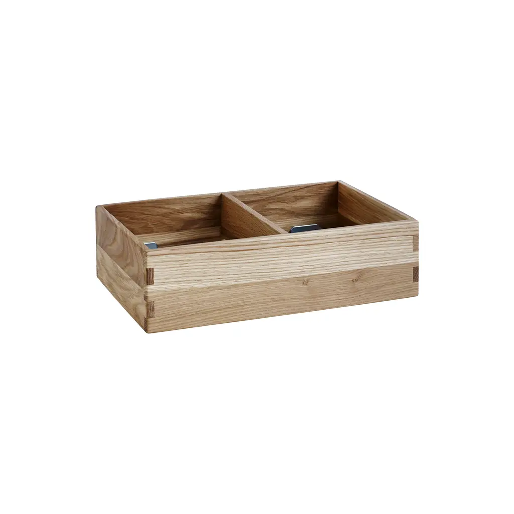 The Cutter box by Skagerak offers a stylish setting for various storage needs from gloves and hats to a shoehorn or your dog's leash and harness. The wooden storage box has grooves on the bottom to make it fit perfectly on top of Skagerak's classic Cutter wardrobe. The Cutter collection's first object was the Cutter bench, designed by Niels Hvass in 1999 for the Planken Ud exhibition at Designmuseum Danmark. Today, the Cutter collection features numerous designs from a stool to a mirror and storage elements that share the timeless and airy design of the original bench.