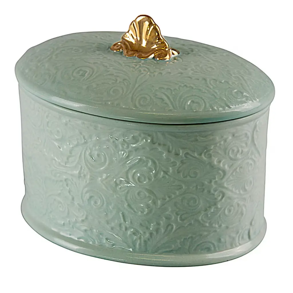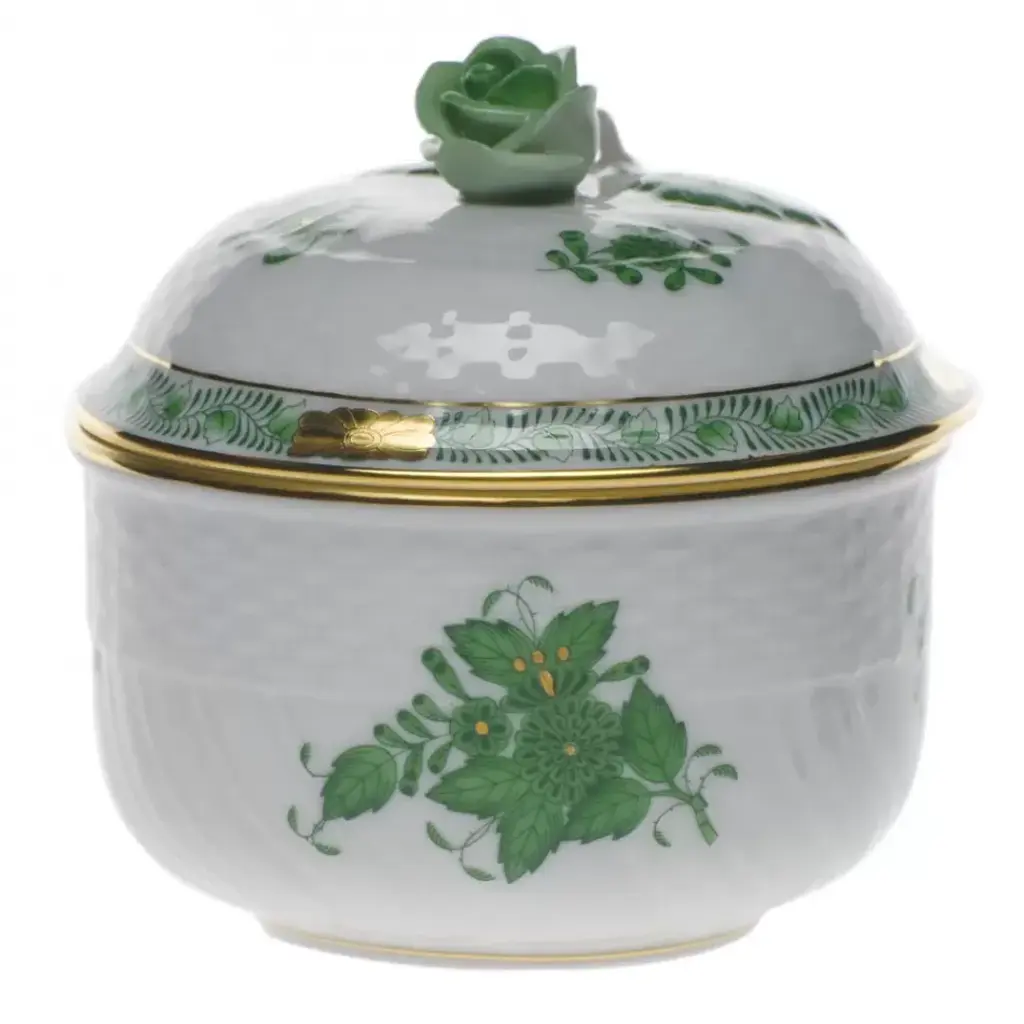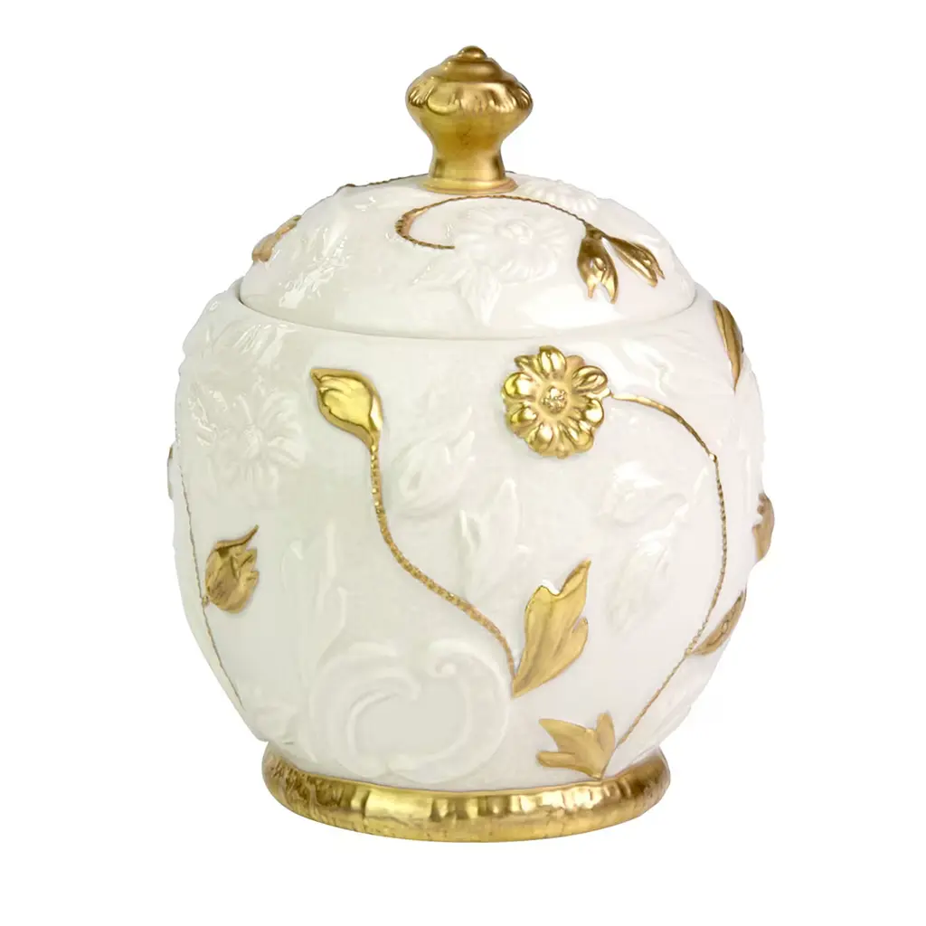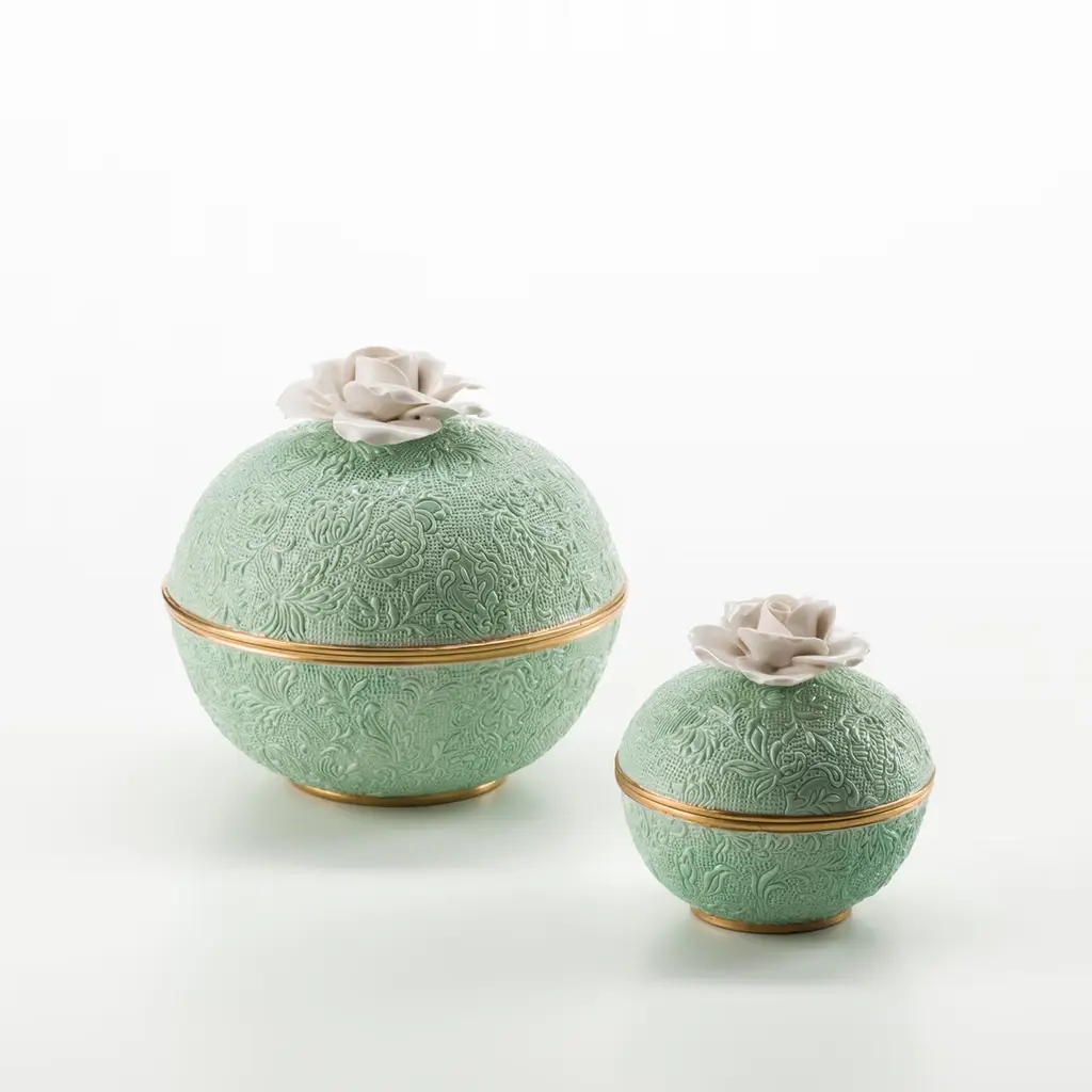 This beautiful box is the result of excellent craftsmanship. The detail of the colored reliefs and the splendid hand-made rose are embellished with gold.