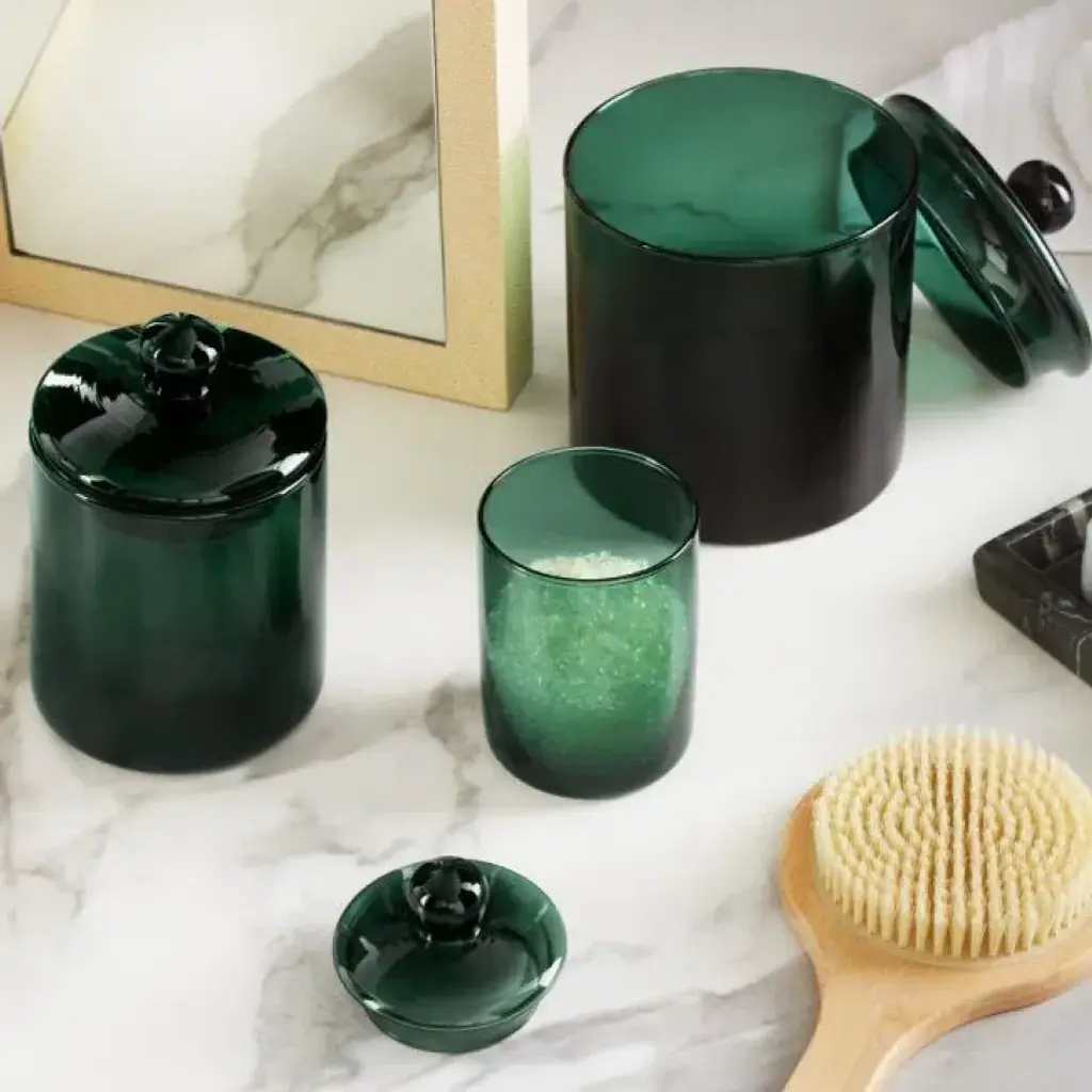 Darby Smokey Green Bath Canister Large: 5"d X 7"h