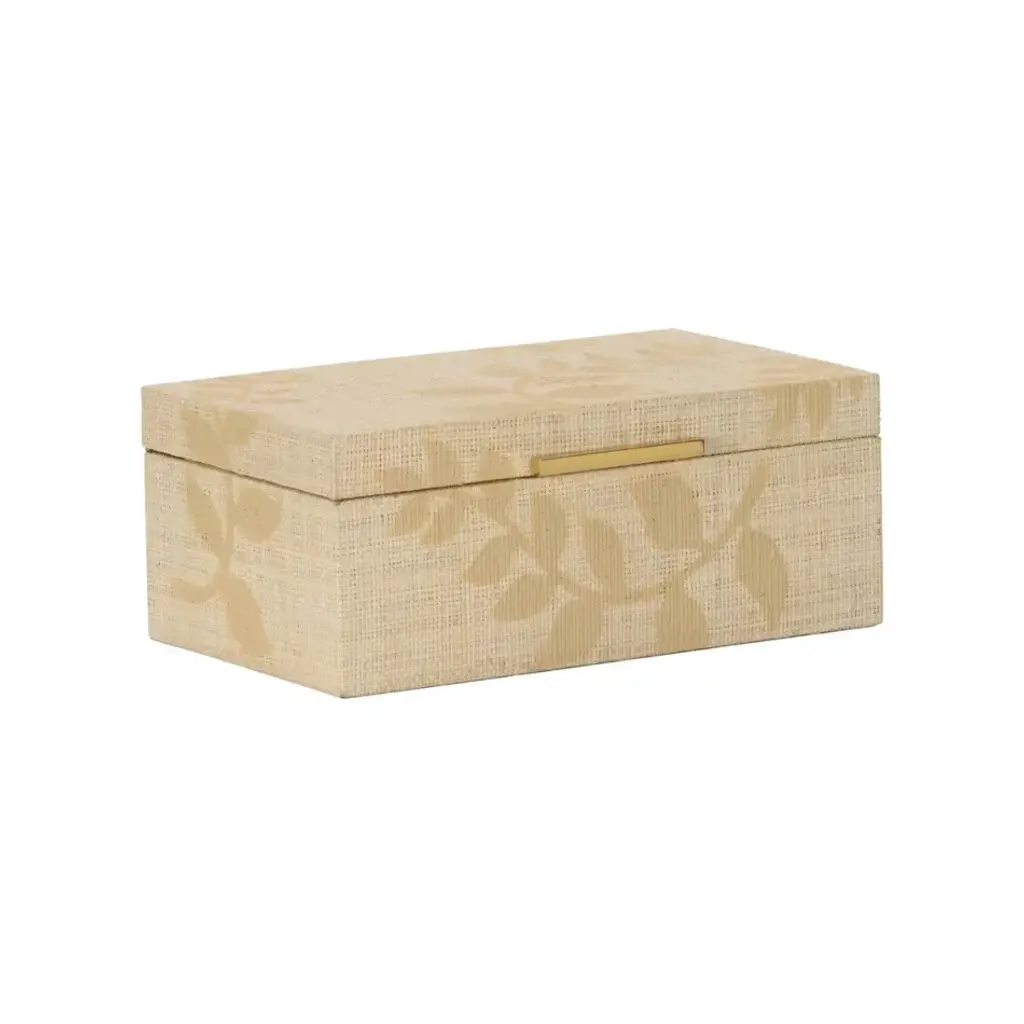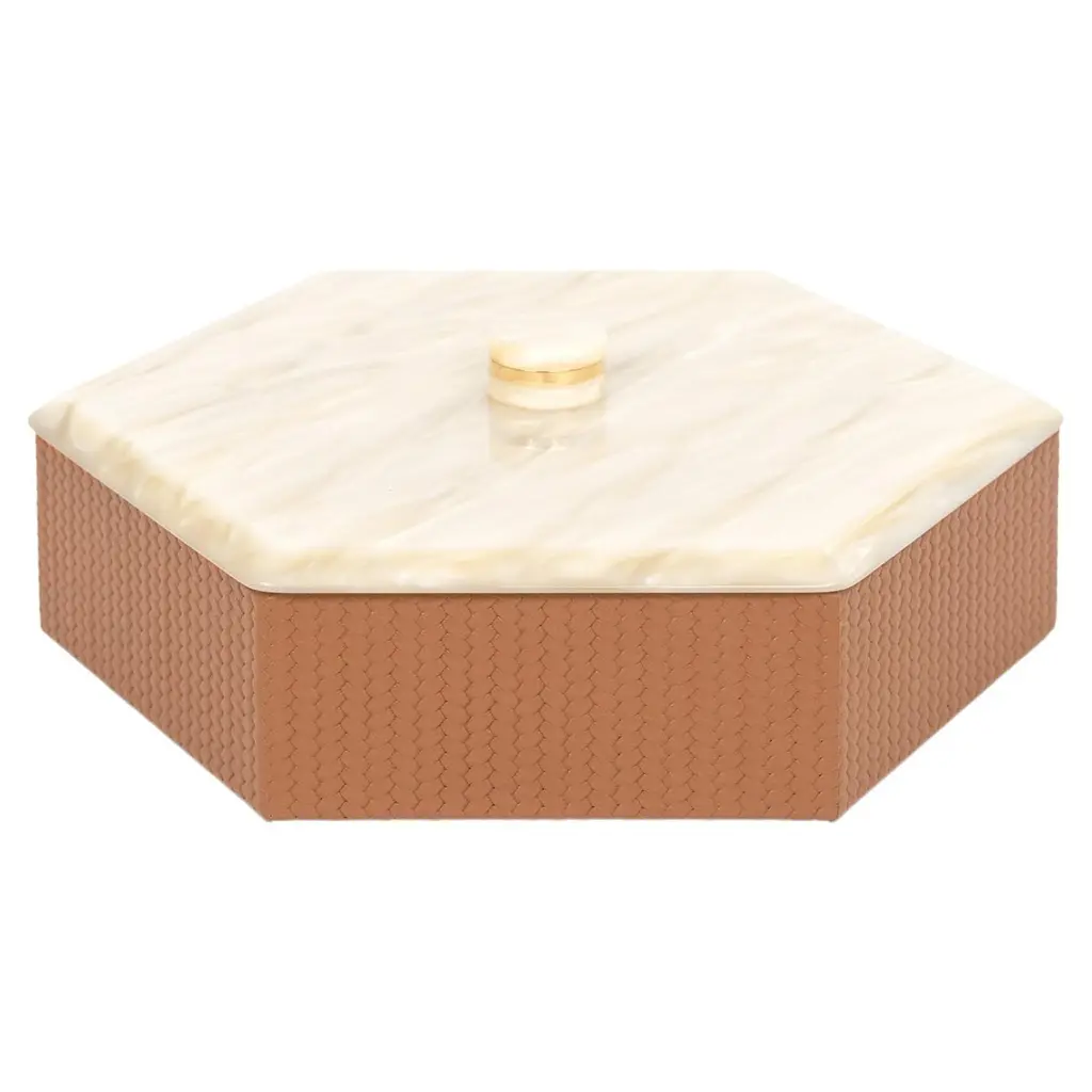 This beautiful, decorative box made with vegan snakeskin creamy leather is accented with sculptural organic circle in gold which will render a sophisticated look to your home's interior.