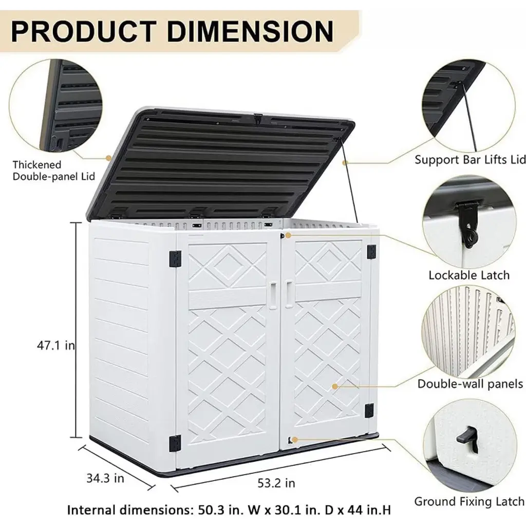 Decksplore Outdoor Storage Shed 53.15 In.x 33. 07 In.x 46. 85 In. White Resin Large Waterproof Deck Box Shed