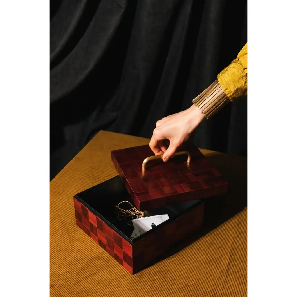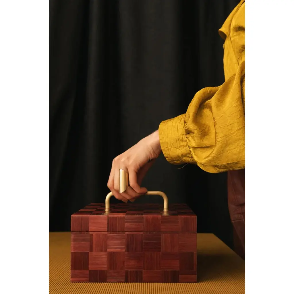 Decorative Box 01 by Ruda StudioDimensions: D 20 x W 20 x H 10,5 cm.Materials: MDF, painted rye straw and brass.Weight: 3 kg.Available in individuals colors. Please contact us. Design brand RUDA Studio was founded in 2017 by Oleksandra Rudenko and Yuriy Vovnyanko. RUDA Studio - Ukrainian artisanal atelier with harvest of Fine Craft Design.In the atelier we create unique household items. The studio seeks to make each project individual and special, focusing on feelings, custom items, and the combination of the historical and the modern. Our creations are inspired by natural materials and ancient craft techniques. Each product has its own function, but is more like an object of art that touchesthe soul. The vision of interior items encourages us to preserve and actualize our cultural heritage. In our works, we restore knowledge about Ukrainian folklore, pay attention to socially important topics and focus on the interaction between humans and nature. In the studio, objects are created from local materials - brass, copper, clay, straw, algae, trees, andstone.