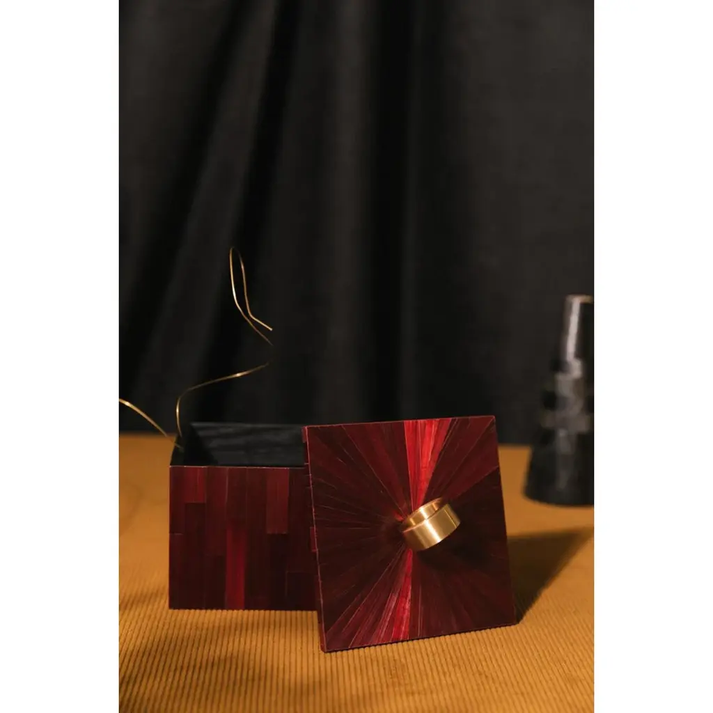 Decorative Box 02 by Ruda StudioDimensions: D 12 x W 12 x H 9,5 cm.Materials: MDF, painted rye straw and brass.Weight: 2 kg.Available in individuals colors. Please contact us. Design brand RUDA Studio was founded in 2017 by Oleksandra Rudenko and Yuriy Vovnyanko. RUDA Studio - Ukrainian artisanal atelier with harvest of Fine Craft Design.In the atelier we create unique household items. The studio seeks to make each project individual and special, focusing on feelings, custom items, and the combination of the historical and the modern. Our creations are inspired by natural materials and ancient craft techniques. Each product has its own function, but is more like an object of art that touchesthe soul. The vision of interior items encourages us to preserve and actualize our cultural heritage. In our works, we restore knowledge about Ukrainian folklore, pay attention to socially important topics and focus on the interaction between humans and nature. In the studio, objects are created from local materials - brass, copper, clay, straw, algae, trees, andstone.