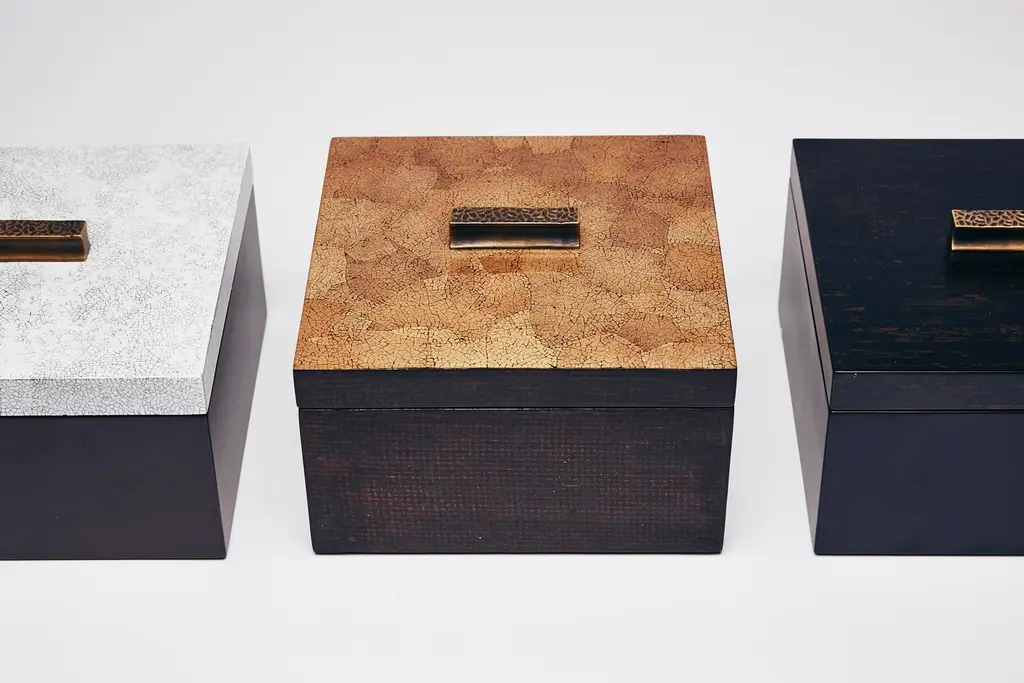 The Reda Amalou design boxes echo Asian and more specifically Vietnamese culture by which Amalou has been inspired over time. The boxes that make up this line of accessories are available in three finishes: eggshell, glossy, or matte lacquers and in two sizes. The combination of materials specific to Asia and the pure lines of Amalou’s design make it a precious object that can be used as a jewelry box or to hold secrets.