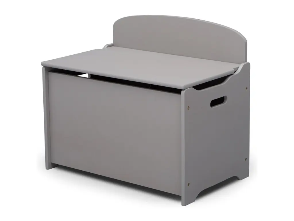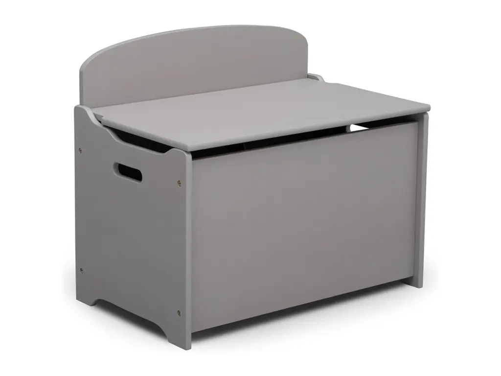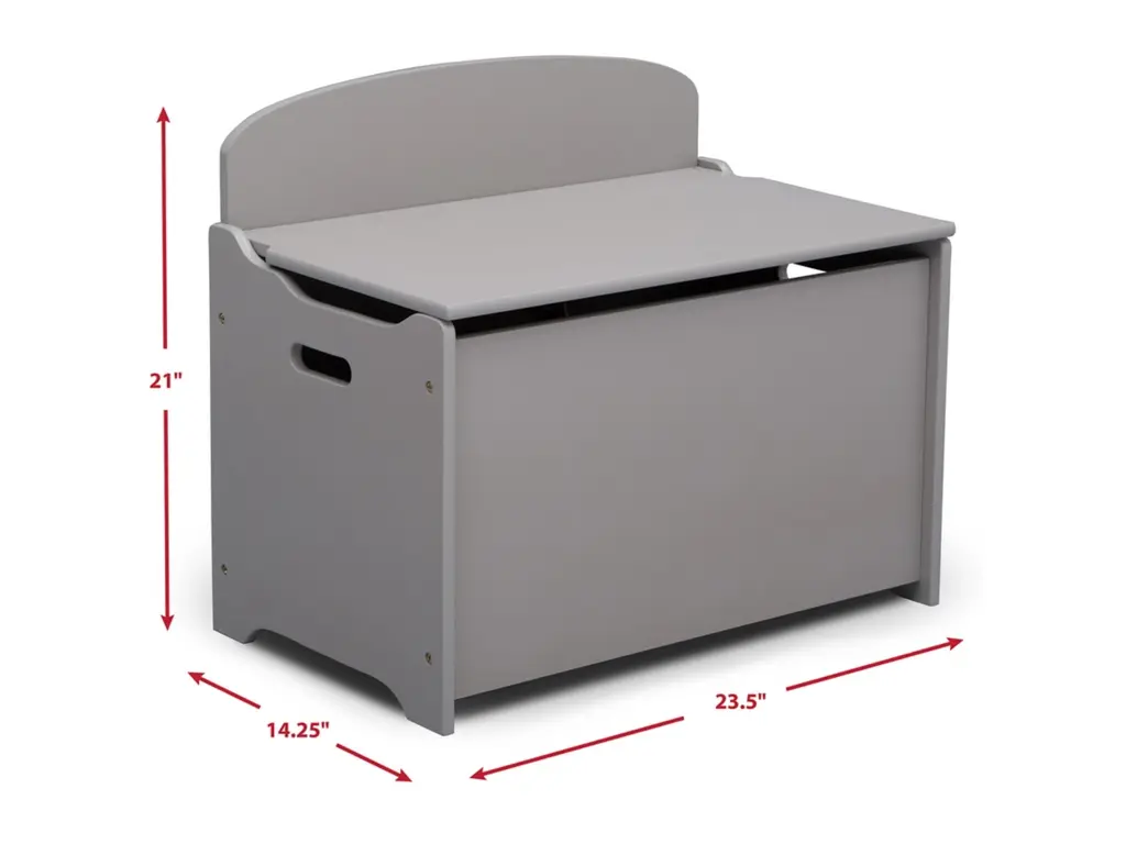 The MySize Deluxe Toy Box from Delta Children is a stylish storage option for the living room, playroom or your child's bedroom. Outfitted with a spacious interior, this toy organizer provides plenty of space to store toys large and small. Cutout handles allow you to easily move the toy box from room to room. Designed with a slow-closing lid to prevent little hands from getting caught, the MySize Deluxe Toy Box from Delta Children is a safe choice for your little one.