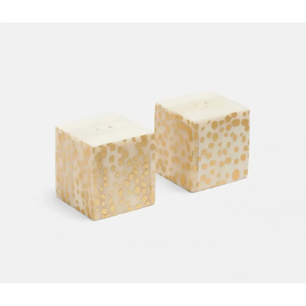 Dermott Spotted Gold, Set Of 2 Salt And Pepper Shakers, Bone, Boxed