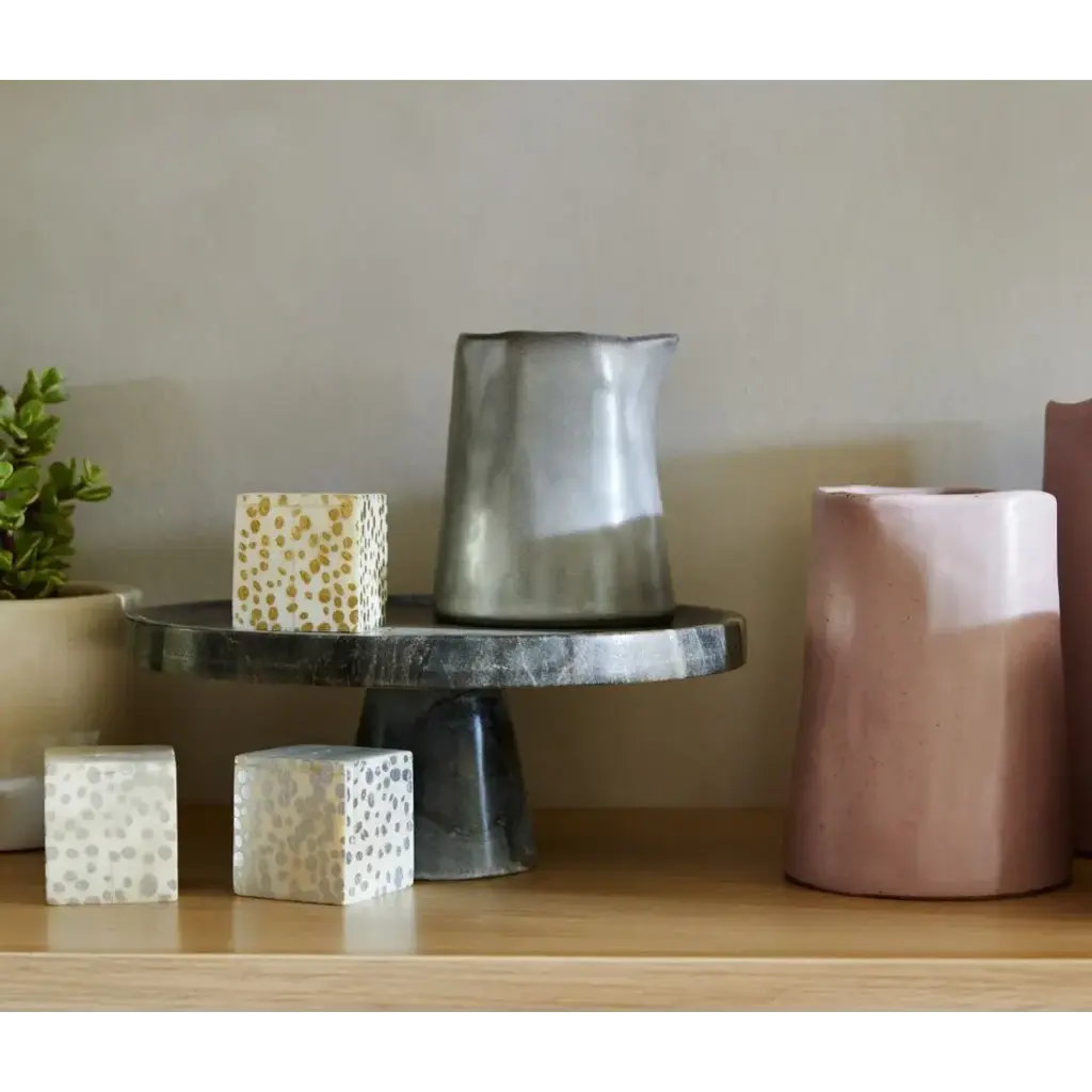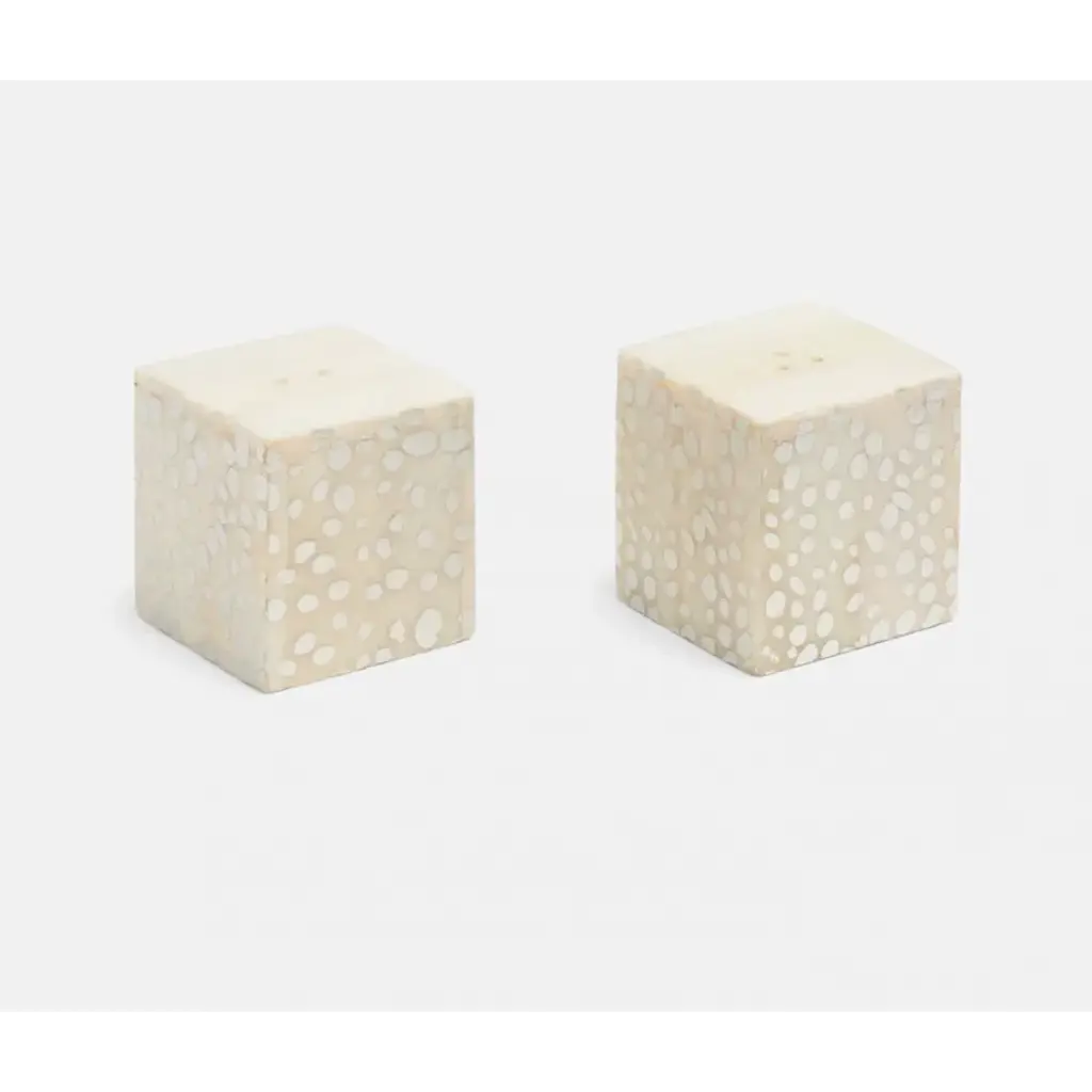 Our Dermott salt-and-pepper shakers are elegantly enwrapped in bone with either spotted gold or spotted silver. Blue Pheasant's products are handmade with care by artisans using natural materials. They are not mass produced, so variation between products should be expected, and this is why we love them! It is these irregularities that makes Blue Pheasant what it is—a special brand whose collections are distinctly handmade, full of charm and originality you’ll never find in machine-made products.