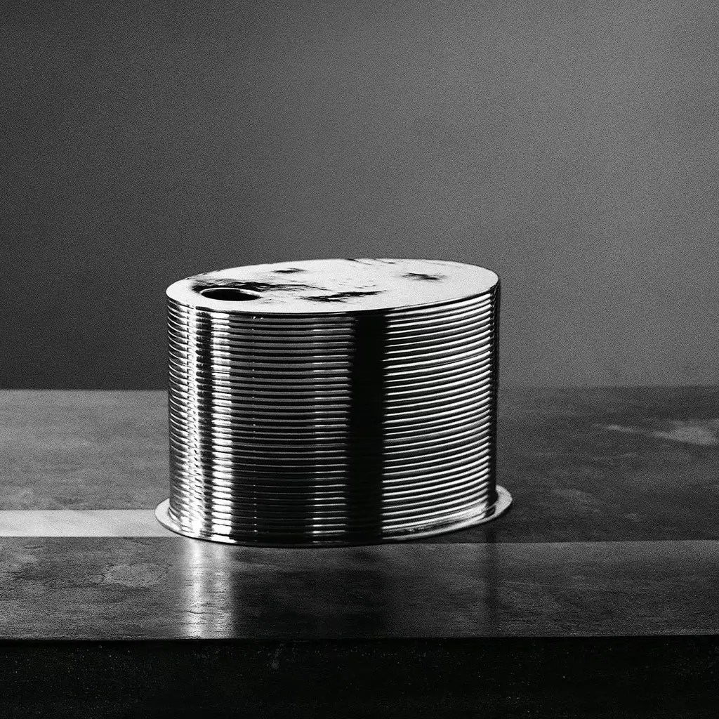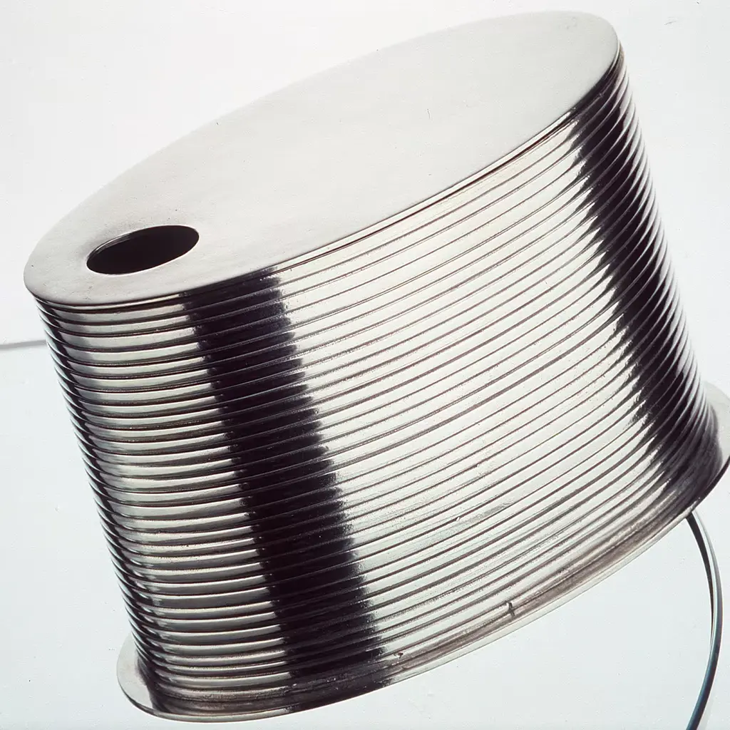 Part of the Metallia Project, this box is a limited edition designed by Mario Trimarchi and Marco Susani. Crafted of metal, its oval silhouette is enriched with a series of grooves that create a splendid interplay of lights and shadows. The lid is smooth and equipped with a hole that makes it easier to open.