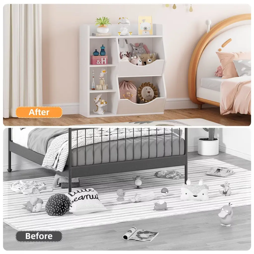 Dobleepy 2-tier Toy Storage Organizer, Bookshelf For Toys, Books, 3 Open Compartments & 2 Tilting Storage Boxes For Home, Kindergarten, White